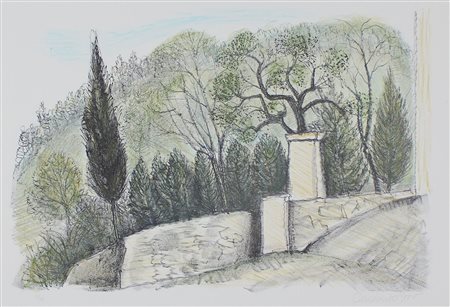De Moor Christian I cipressi, 1980 litografia a 4 colori su carta, cm. 50x70, es. 28/80 firmata in basso a destra, certificato di autenticità della Graphis Arte - Livorno