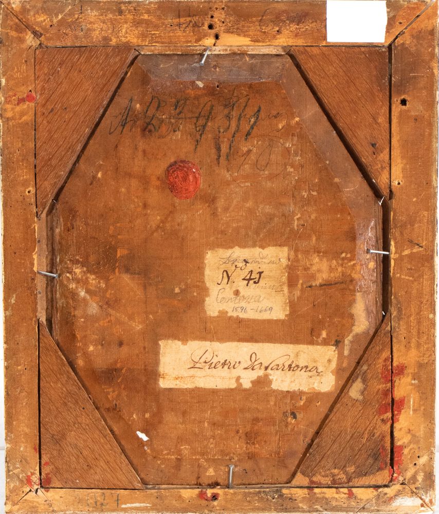Il dipinto reca a retro un bollo in cera lacca e due vecchi cartigli con numero di invetario e attribuzione: "N. 4J /CORTONA / 1596-1669" e "PIETRO DA CORTONA".