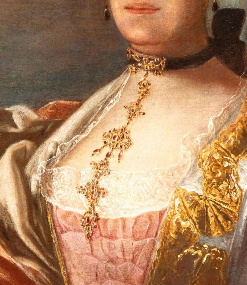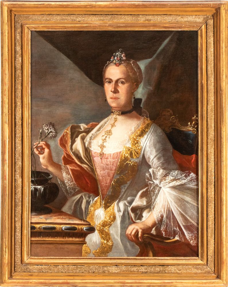 Questo nobile frutto della ritrattistica napoletana del Settecento, che dialoga soprattutto con la produzione di Francesco Solimena, è stato persuasivamente ricondotto da Nicola Spinosa a Carlo Amalfi. Tra i protagonisti del genere in area campana tra il quinto e l'ottavo decennio del XVIII secolo, insieme a Giuseppe Bonito e Gaspare Traversi, Amalfi si distinse per la compostezza delle espressioni e l'eleganza delle posture dei personaggi effigiati, come dimostrano le opere migliori dell'artista quali il Ritratto di gentiluomo e il Ritratto del Cardinale Antonio Sersale, entrambi al Museo Correale di Sorrento, o i tre Ritratti di Dame della Famiglia Serra di Cassano, già presso la Galleria Carlo Virgilio di Roma, ai quali il nostro dipinto può essere opportunamente accostato.