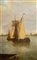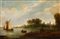 Paesaggio fluviale con veliero, viandanti e borgo sullo sfondo