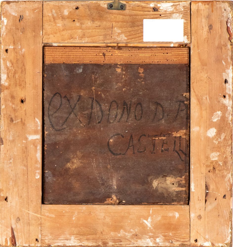 Il dipinto reca a retro iscrizione parziale a pennello: "EX DONO DP / CASTELL[...]".