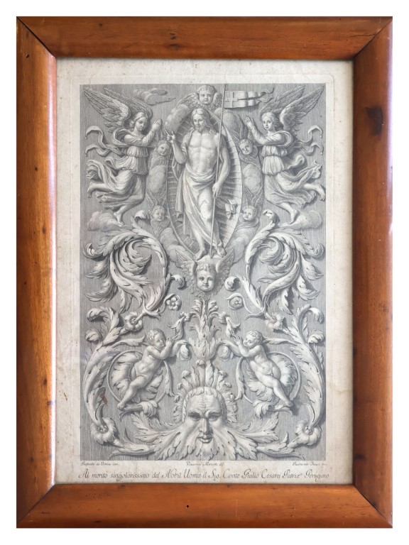Lot 8 | Faucci Raimondo (notizie seconda metà sec. XVIII), incisore; Raffaello da Urbino (notizie 1529), inventore; Monotti Vincenzo (1734/ 1792), disegnatore, Decorazione a grottesca con Gesù Cristo benedicente entro una mandorla