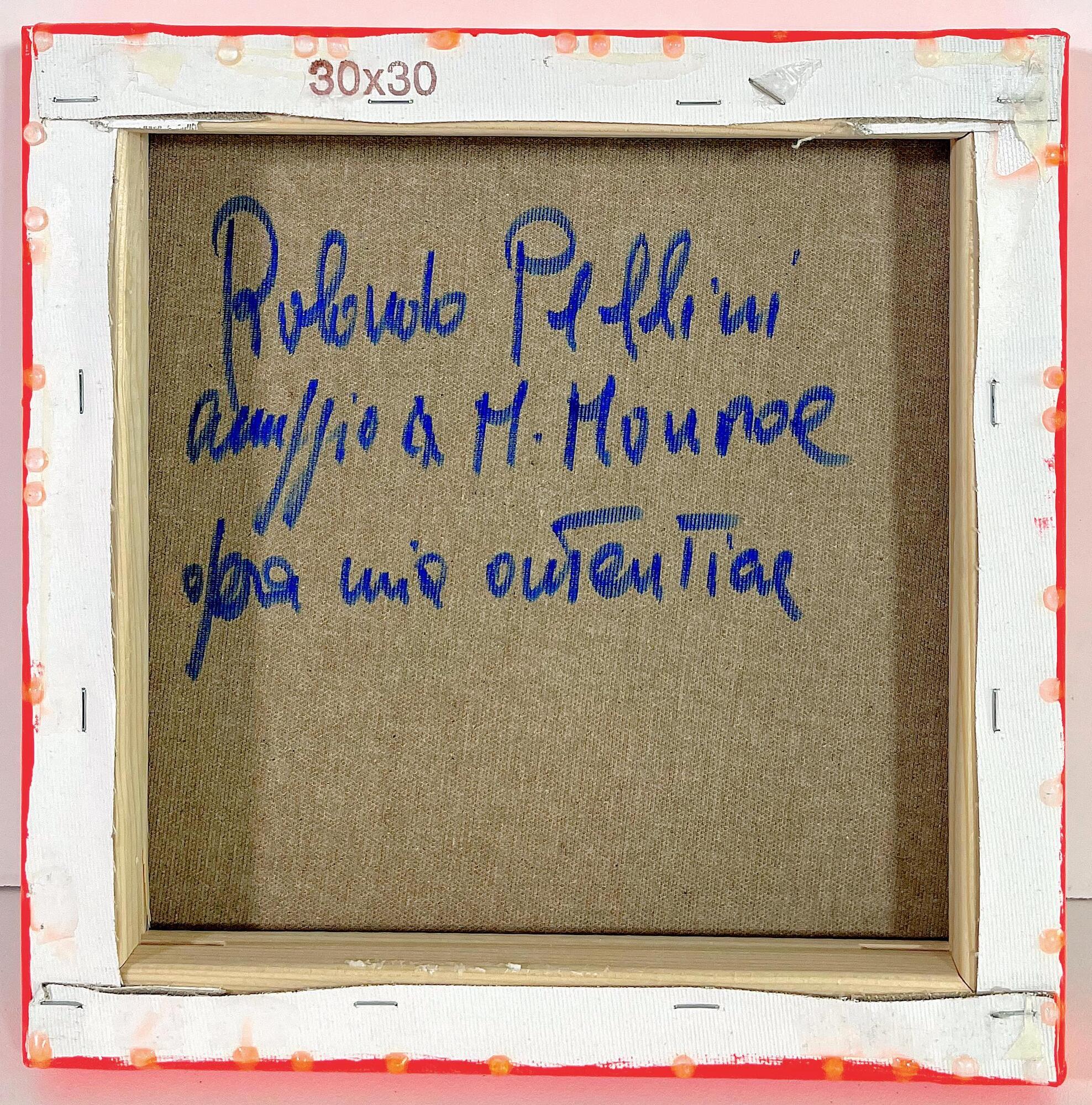 ROLANDO PELLINI, 30 X 30 cm, ”Omaggio a M. Monroe", Tecnica mista e resine su tela ,autentica dell'artista su fotografia