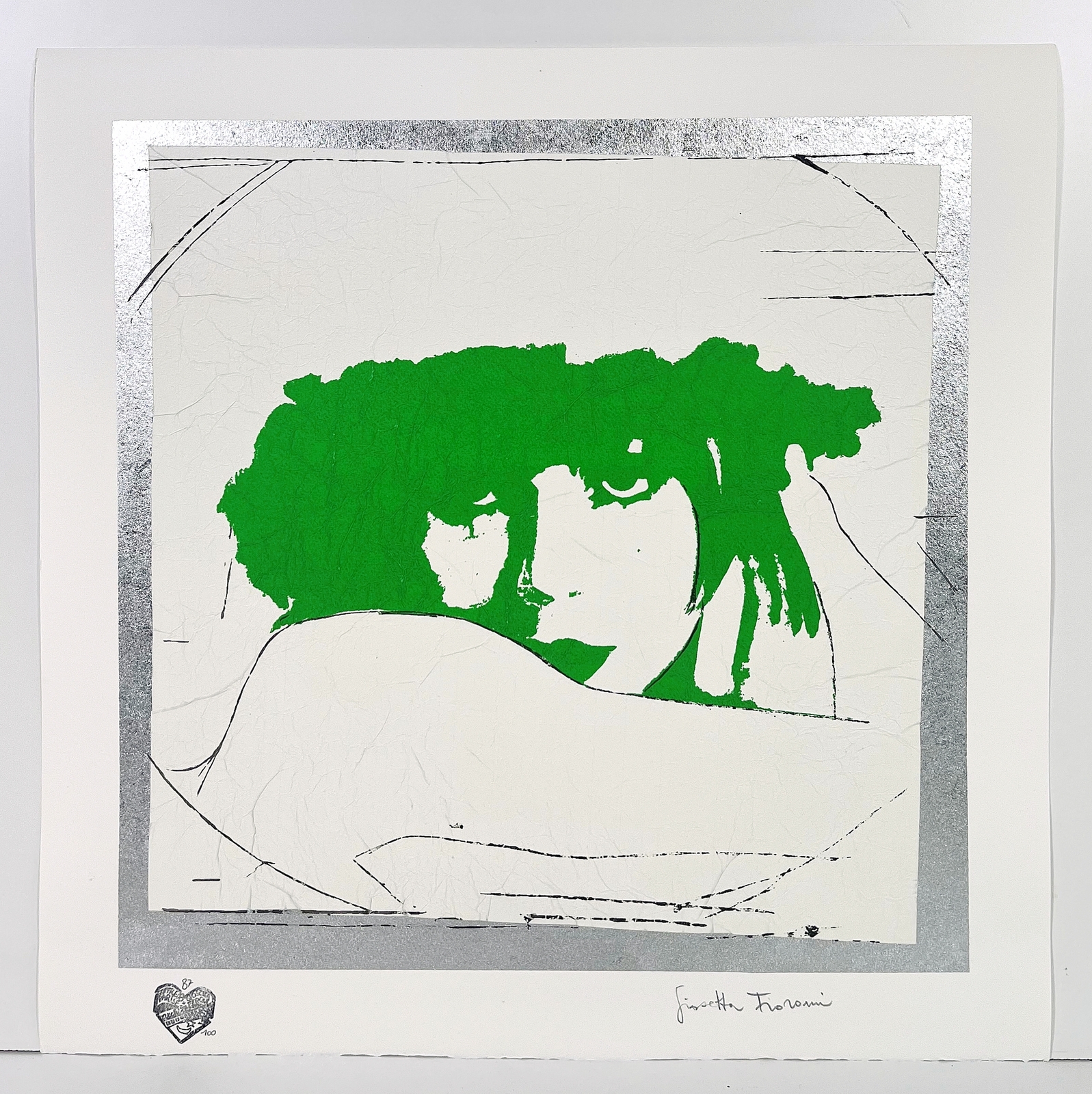 GIOSETTA FIORONI, 50 X 50 cm, ”Doppio Liberty" Verde Luminoso Serigrafia materica con pigmento Verde luminoso.