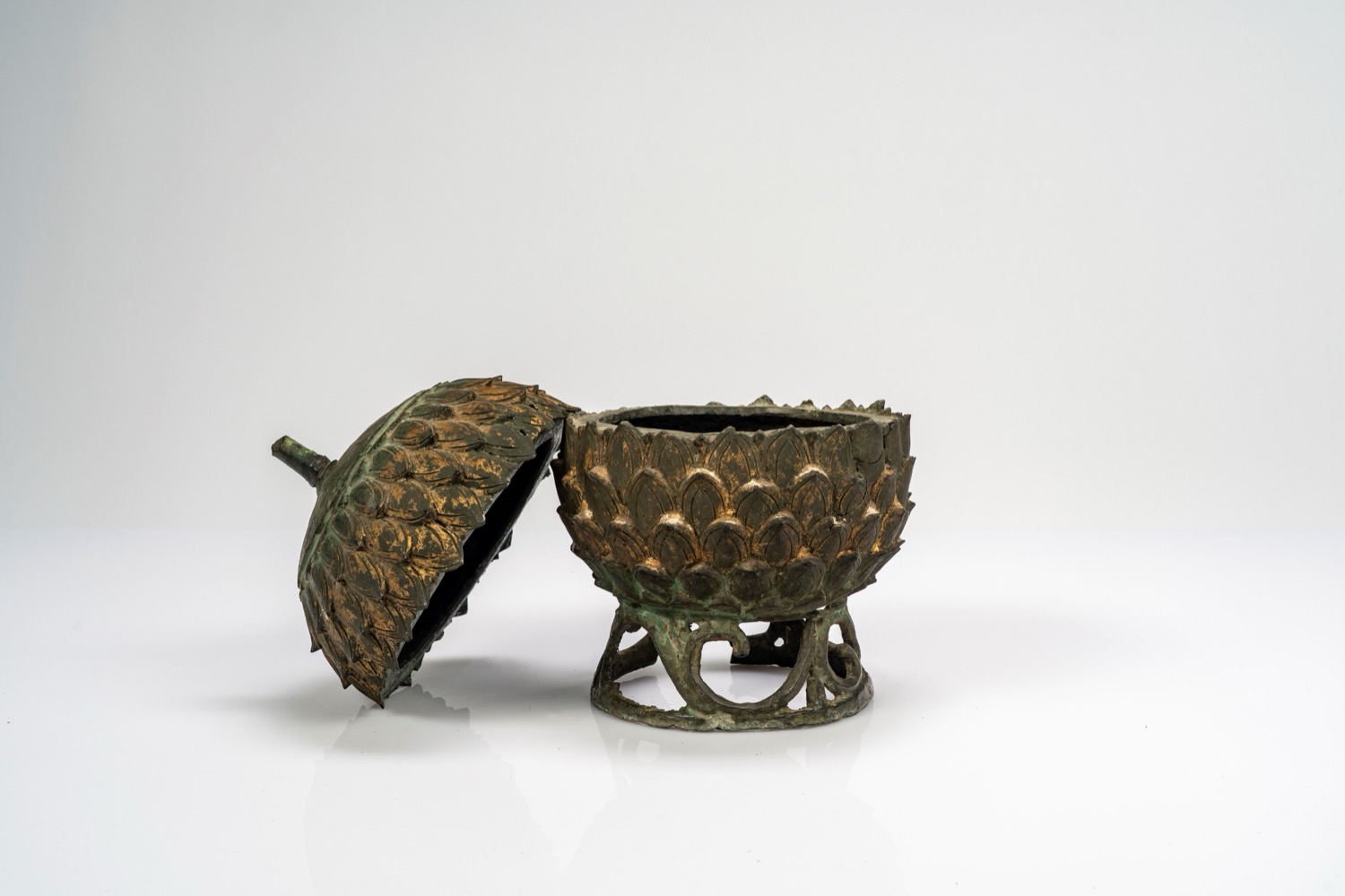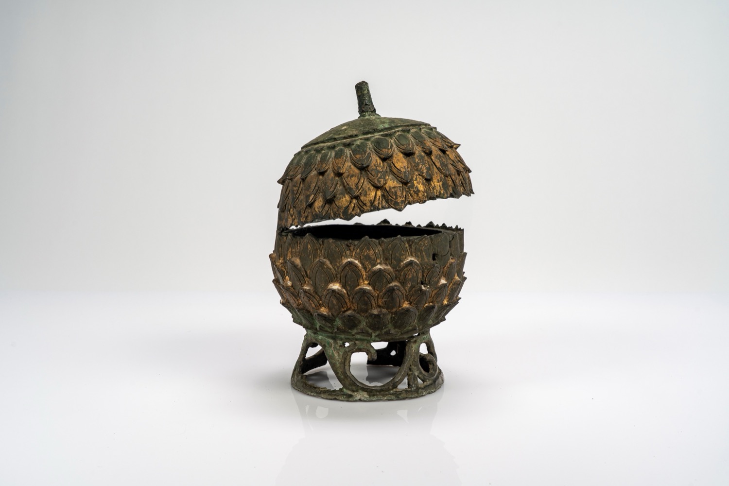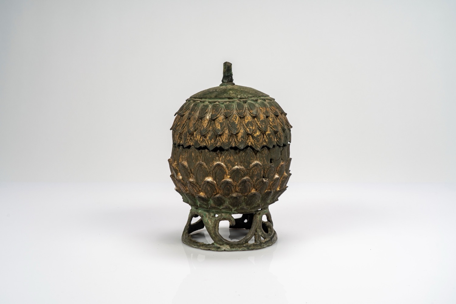 Contenitore in bronzo con coperchio, con tracce di doratura e a forma di pigna. Cina, dinastia Qing (1644–1911)