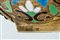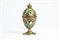 Uovo sormontato da corona in argento dorato, cesellato con smalti policromi cloisonné e guilloché e cabochon di paste vitree color rubino. Russia, fine secolo XIX