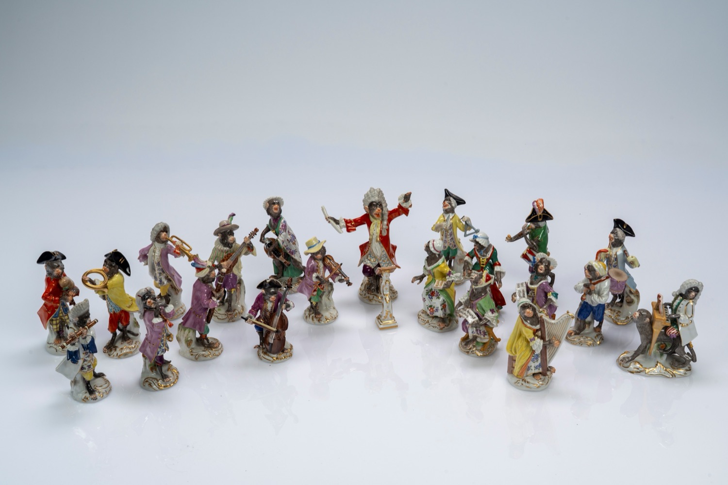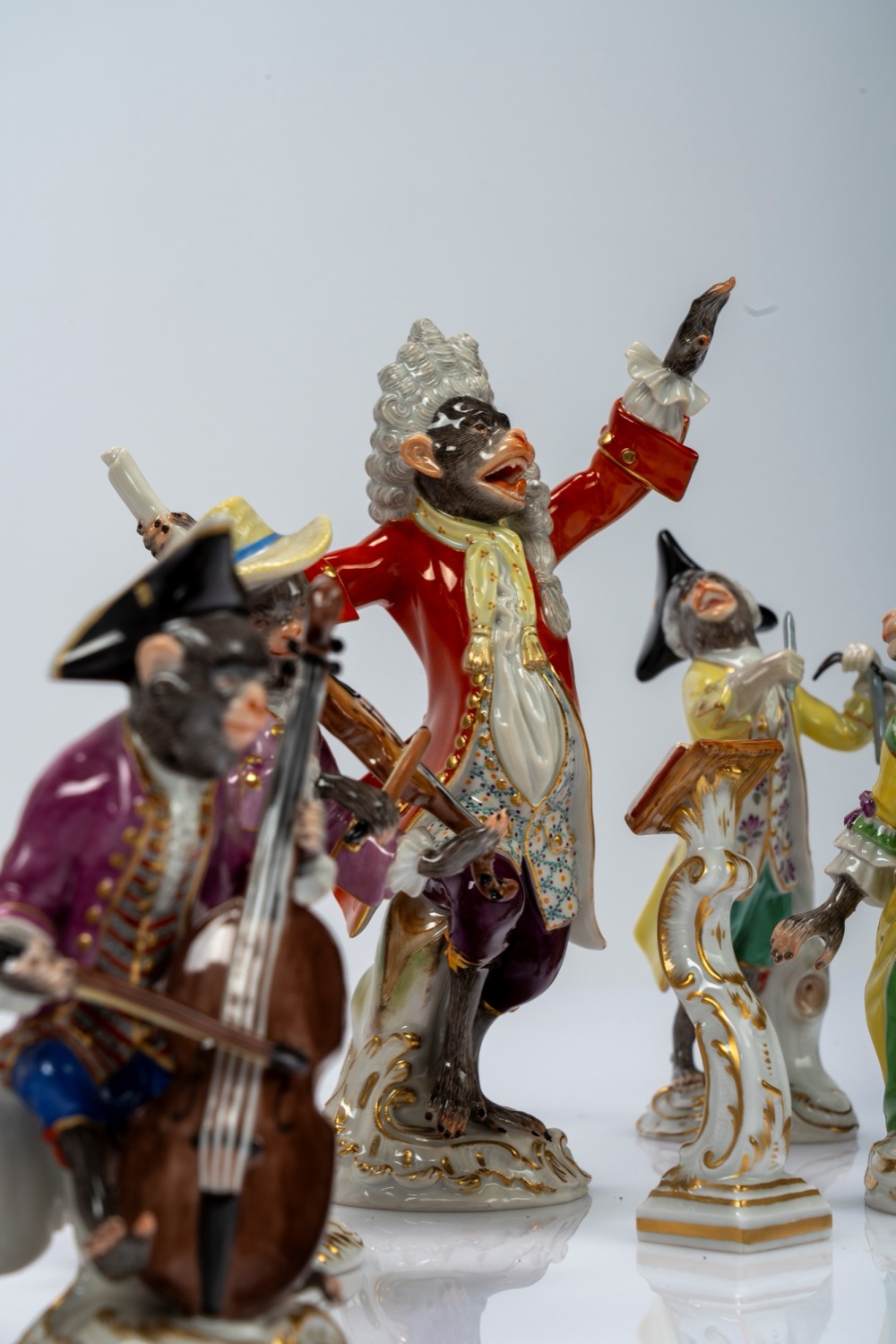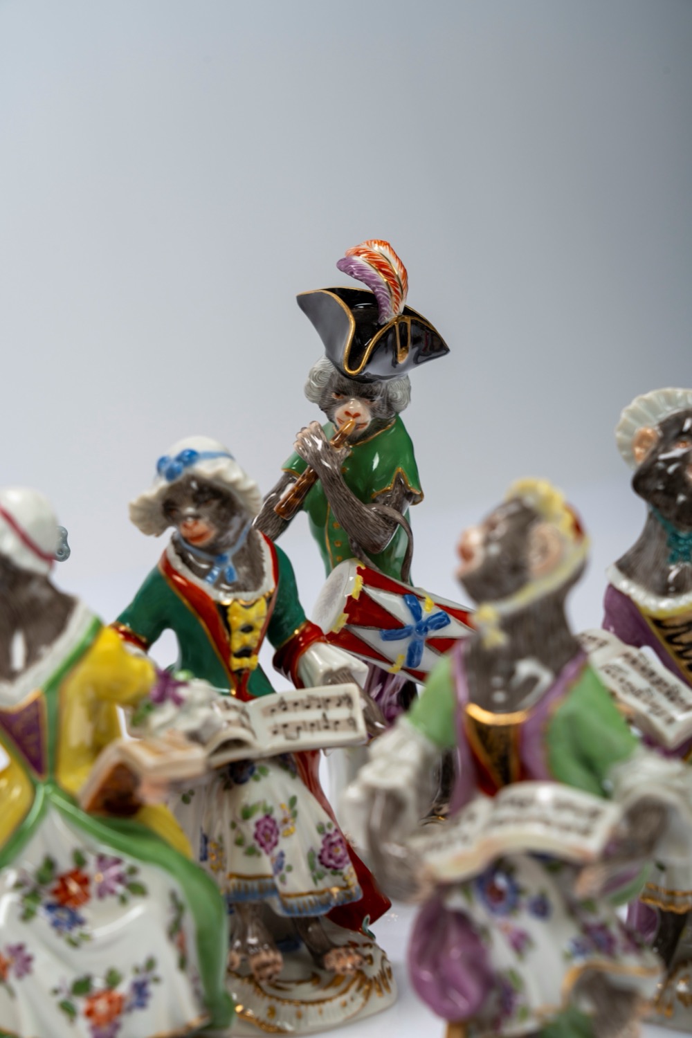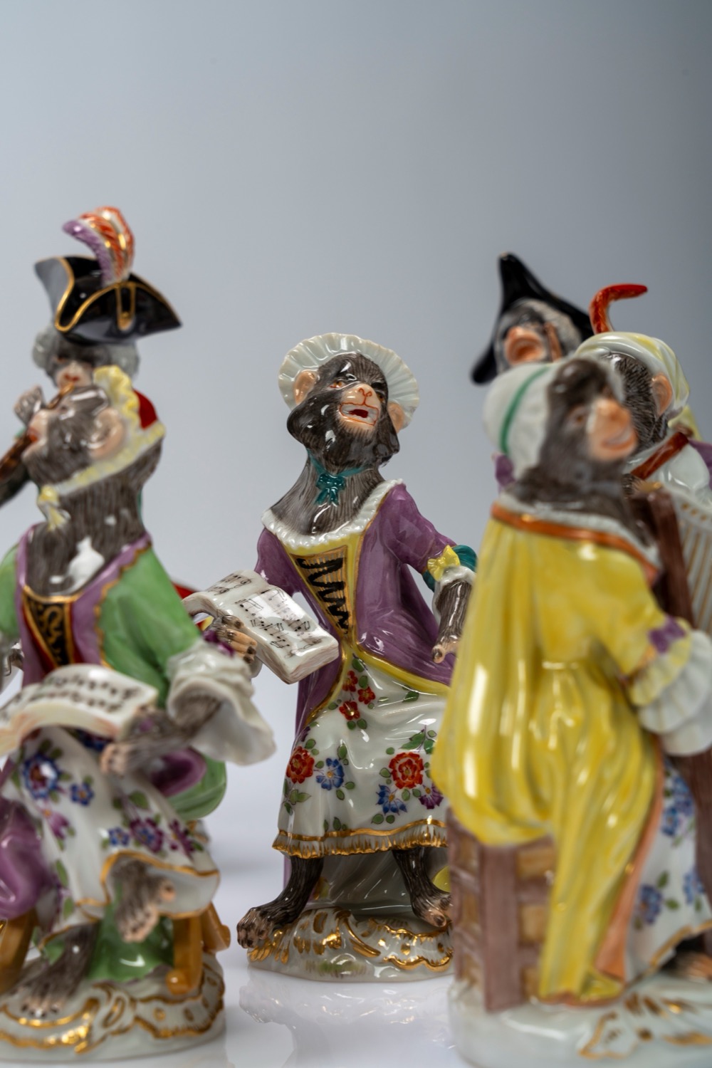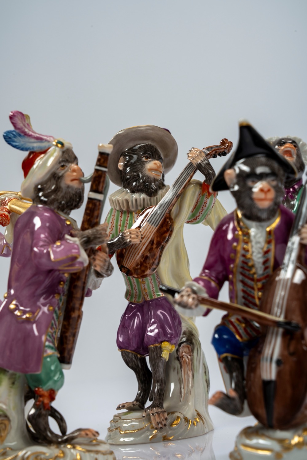 Orchestra di scimmie in porcellana policroma e dorata. Manifattura Meissen, secolo XX