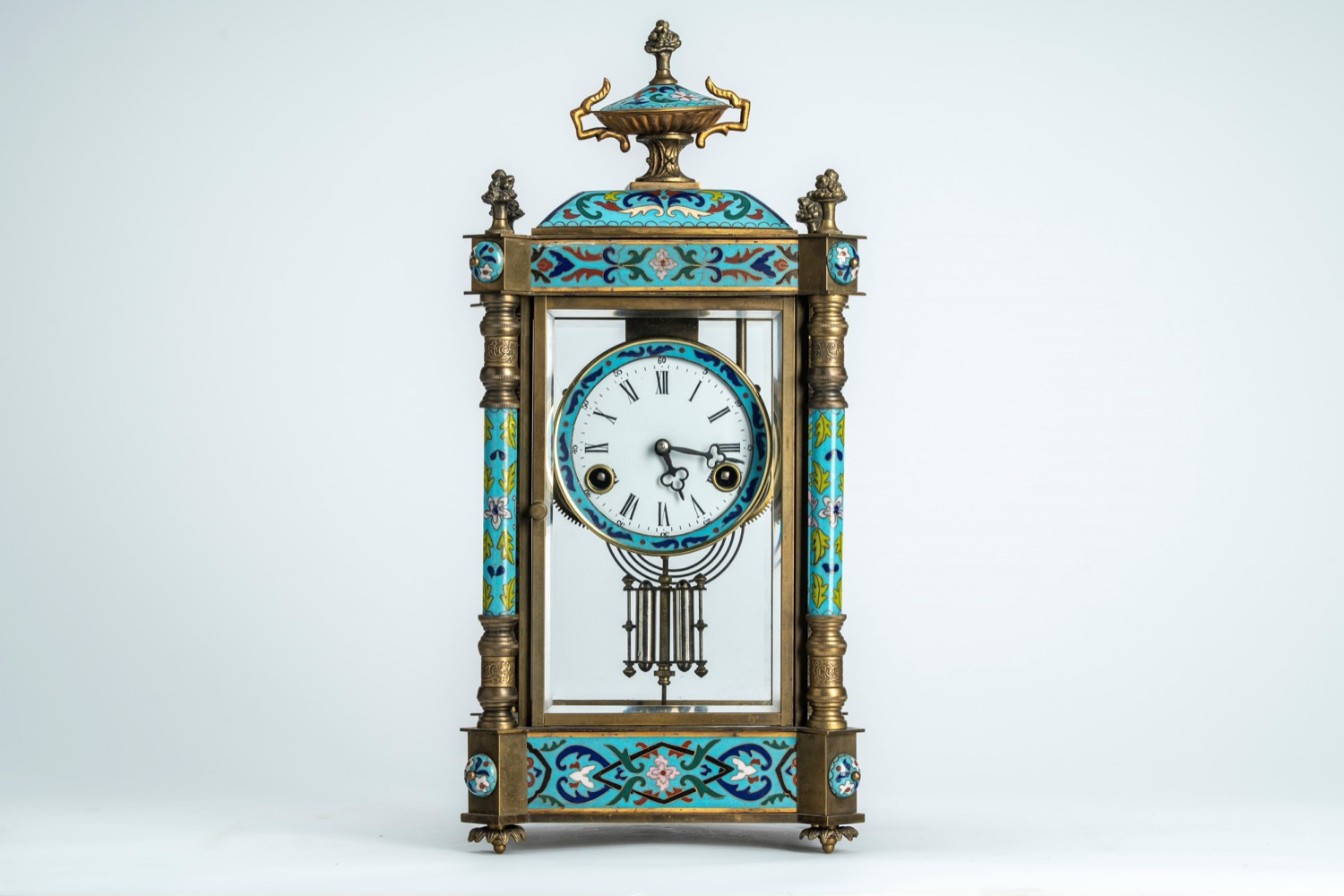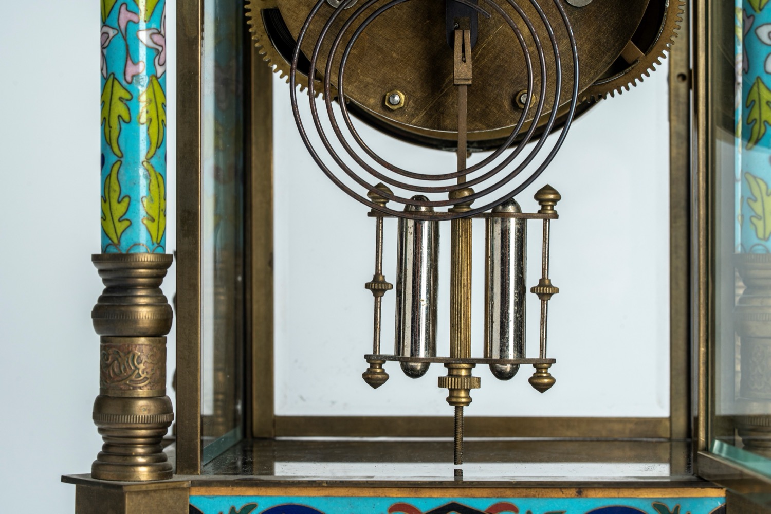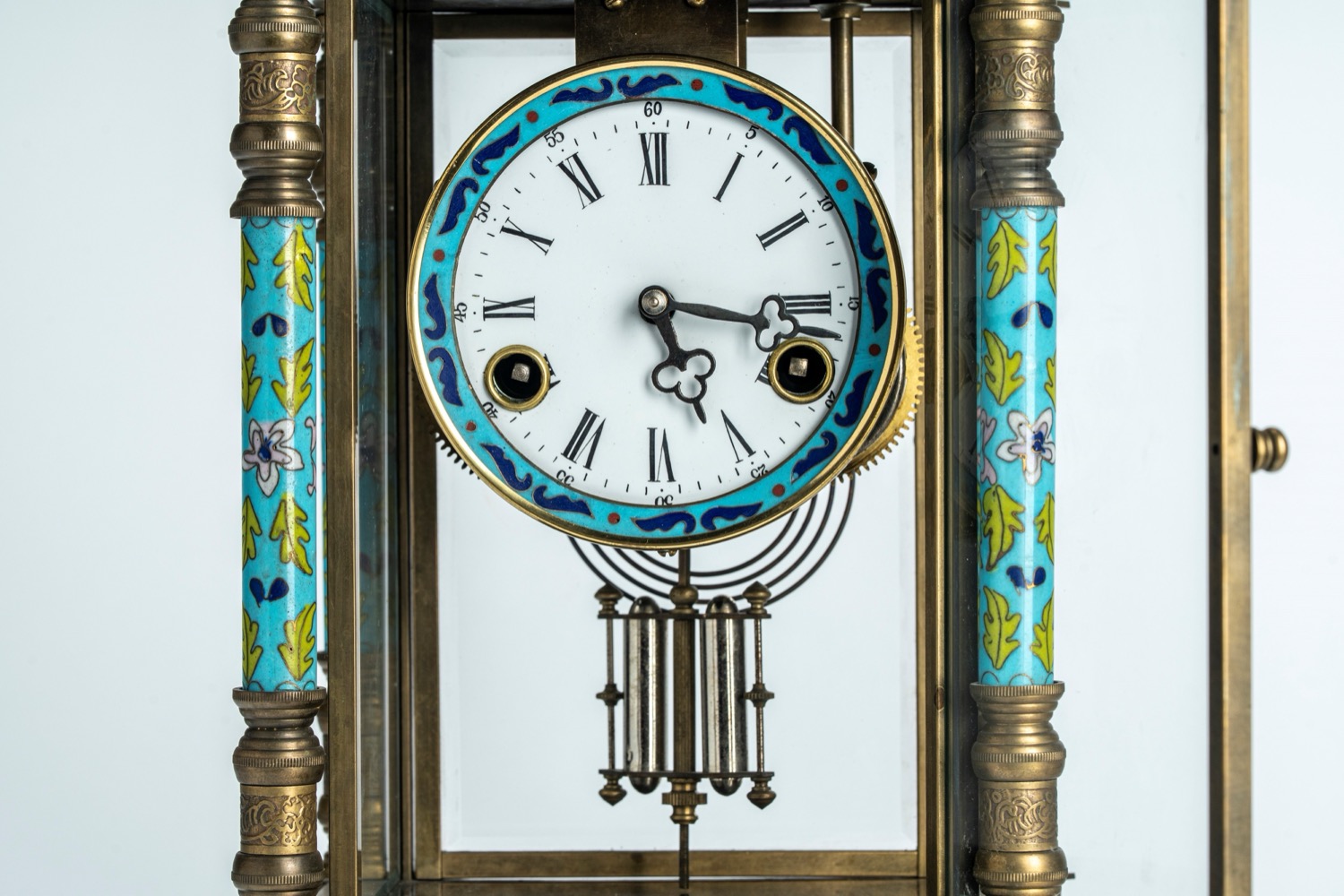 Pendola con cassa in vetro montata in bronzo decorato a smalti policromi. Francia o Austria, fine XIX – inizio XX secolo