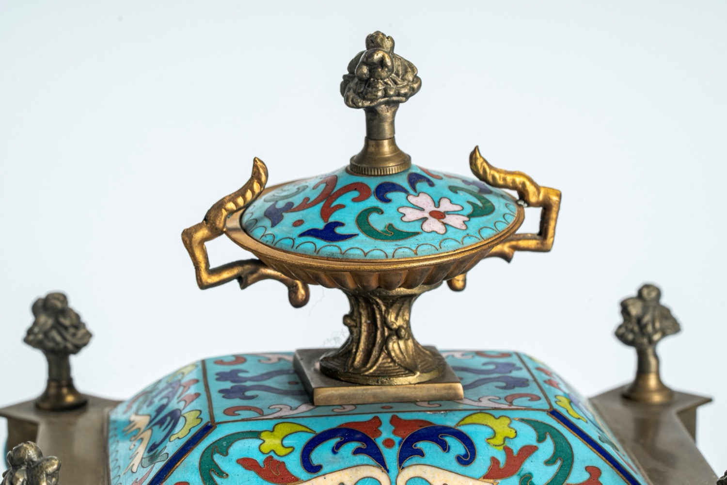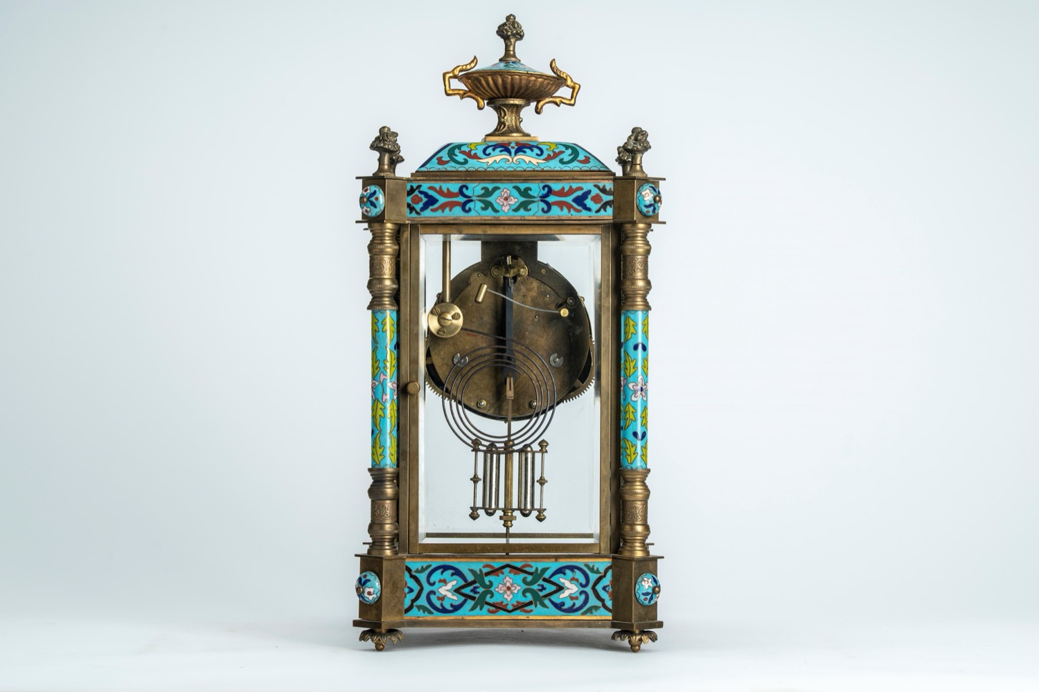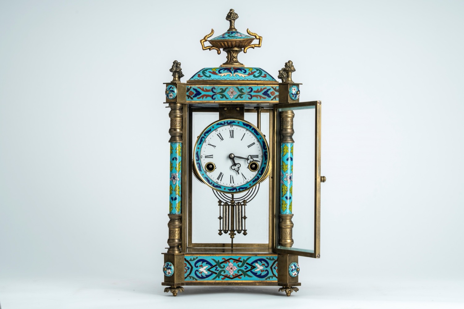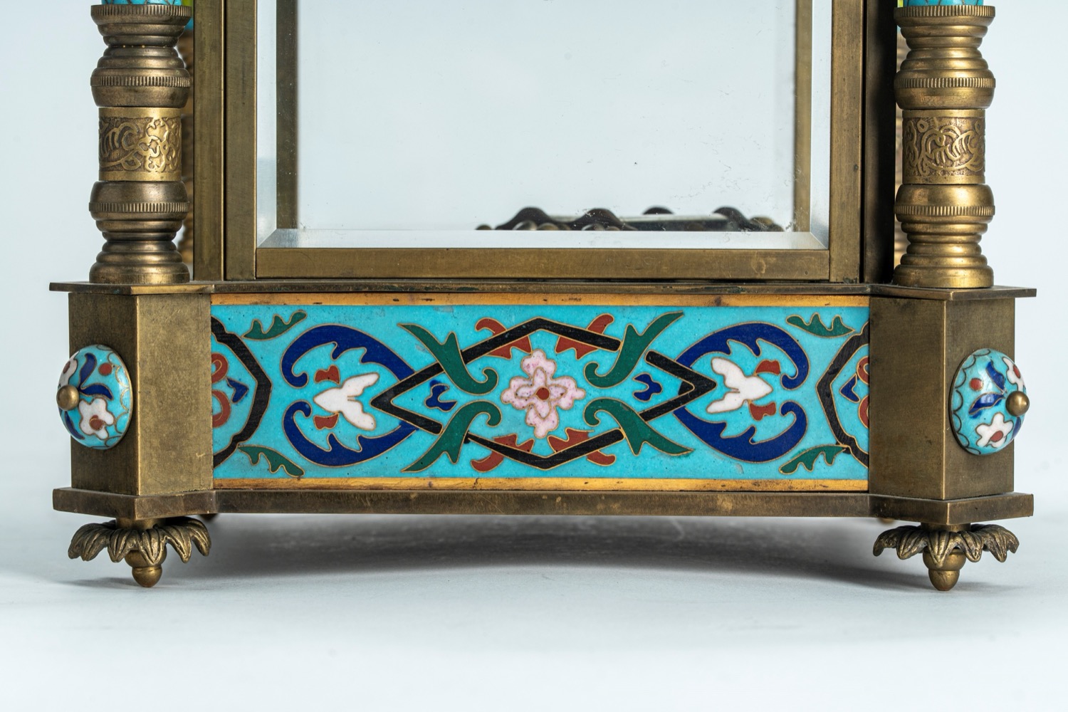 Pendola con cassa in vetro montata in bronzo decorato a smalti policromi. Francia o Austria, fine XIX – inizio XX secolo