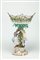 sostegno sa base a rocaille decorato da una dama e un gentiluomo che danzano intorno a un tronco d'albero su cui poggia il cesto biansato a finto vimini con bordo traforatosostegno sa base a rocaille decorato da una dama e un gentiluomo che danzano intorno a un tronco d'albero su cui poggia il cesto biansato a finto vimini con bordo traforato