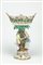 Alzata in porcellana policroma riccamente ornata da fiori, foglie e figure danzanti. Manifattura di Meissen, fine secolo XIX
