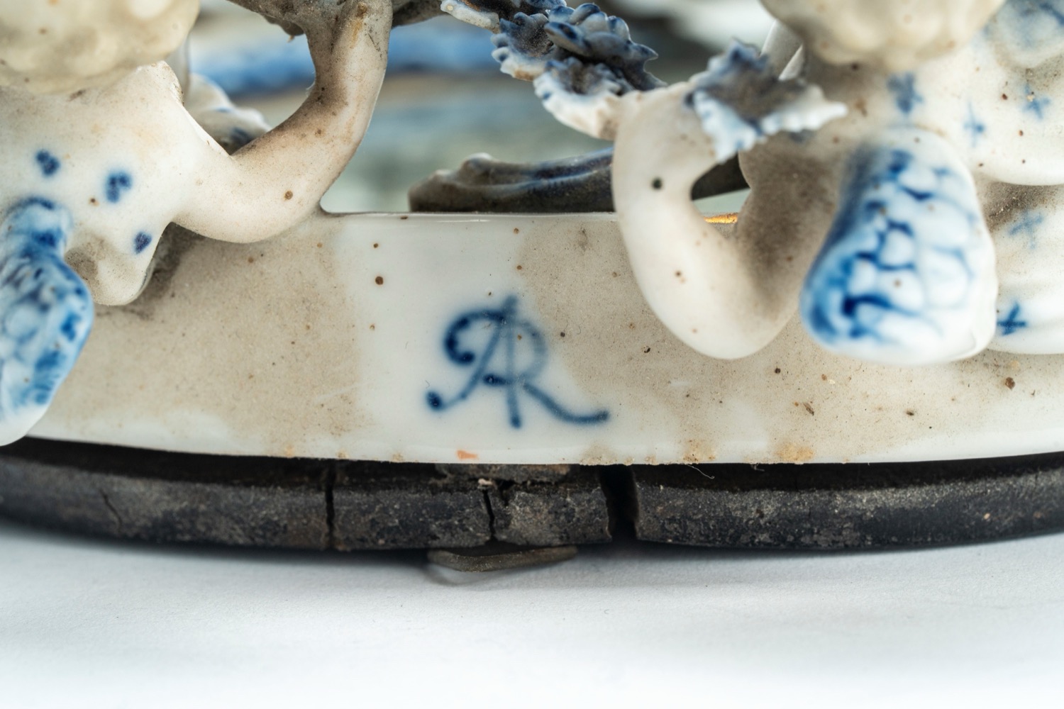 Specchierina di forma ovale in porcellana decorata a fiori, foglie, fiocco a rilievo e sormontata da due putti alati con festone, con due bracci porta […]