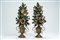 Coppia di porta palme in metallo e ferro policromo, a forma di vasi biansati con foglie e fiori, secolo XIX