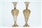 Coppia di vasi porta fiore a balaustro su base circolare con decori a rilievo e dorati a motivi vegetali, secolo XIX