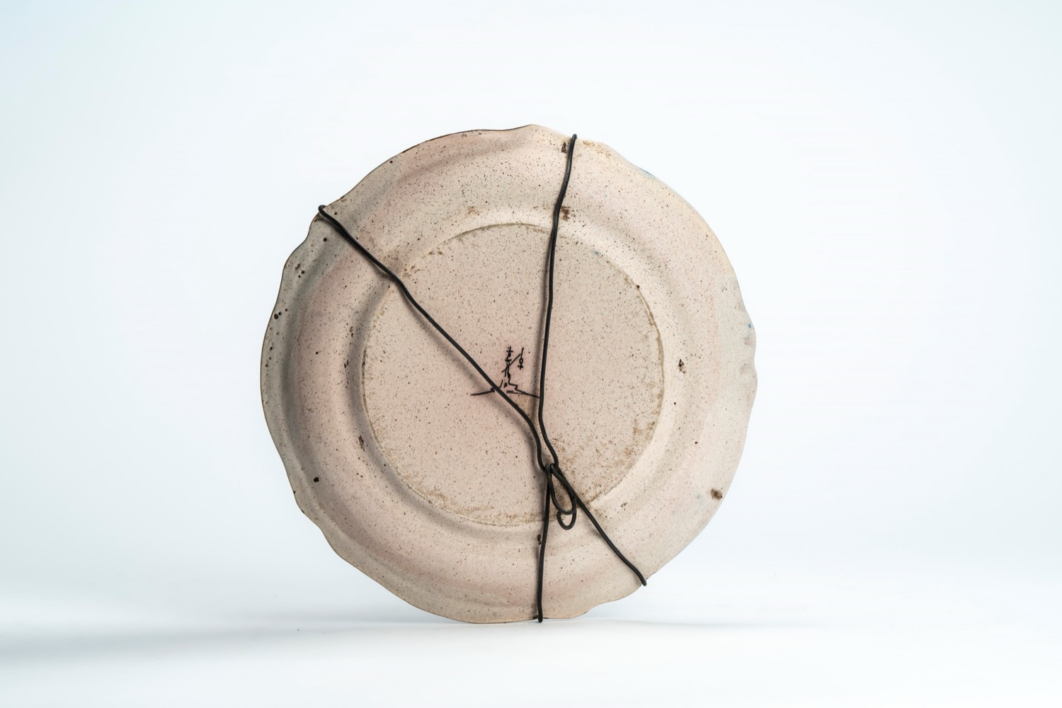 Due piatti in maiolica a bordo mosso con decoro blu cobalto a soldato in un paesaggio. Albissola o Savona, secolo XVIII