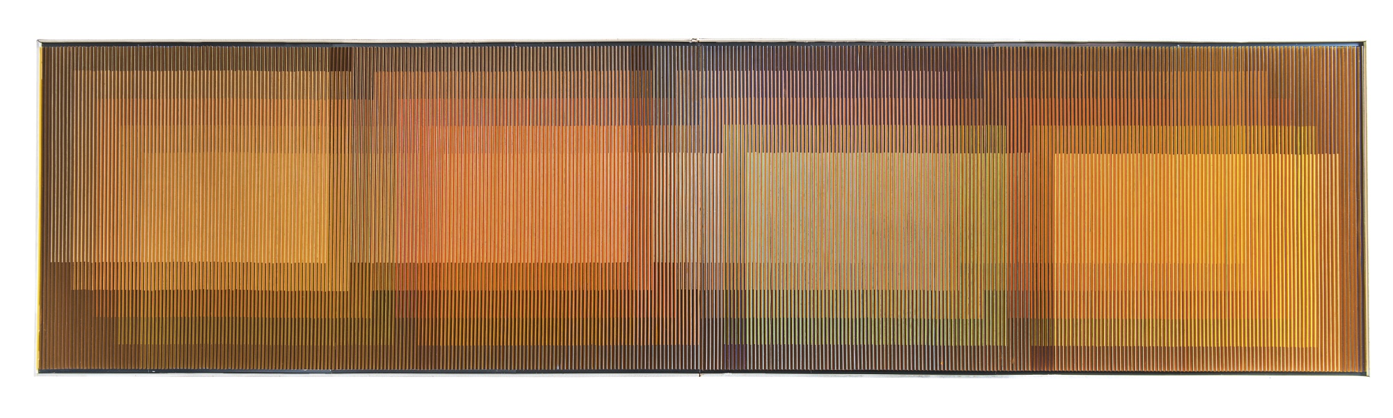Carlos Cruz Diez N. 1923 PHYSICHROMIE N. 533 firmato, intitolato e datato 1970 sul retro acrilico ed elementi plastici su tavola cm 60x240