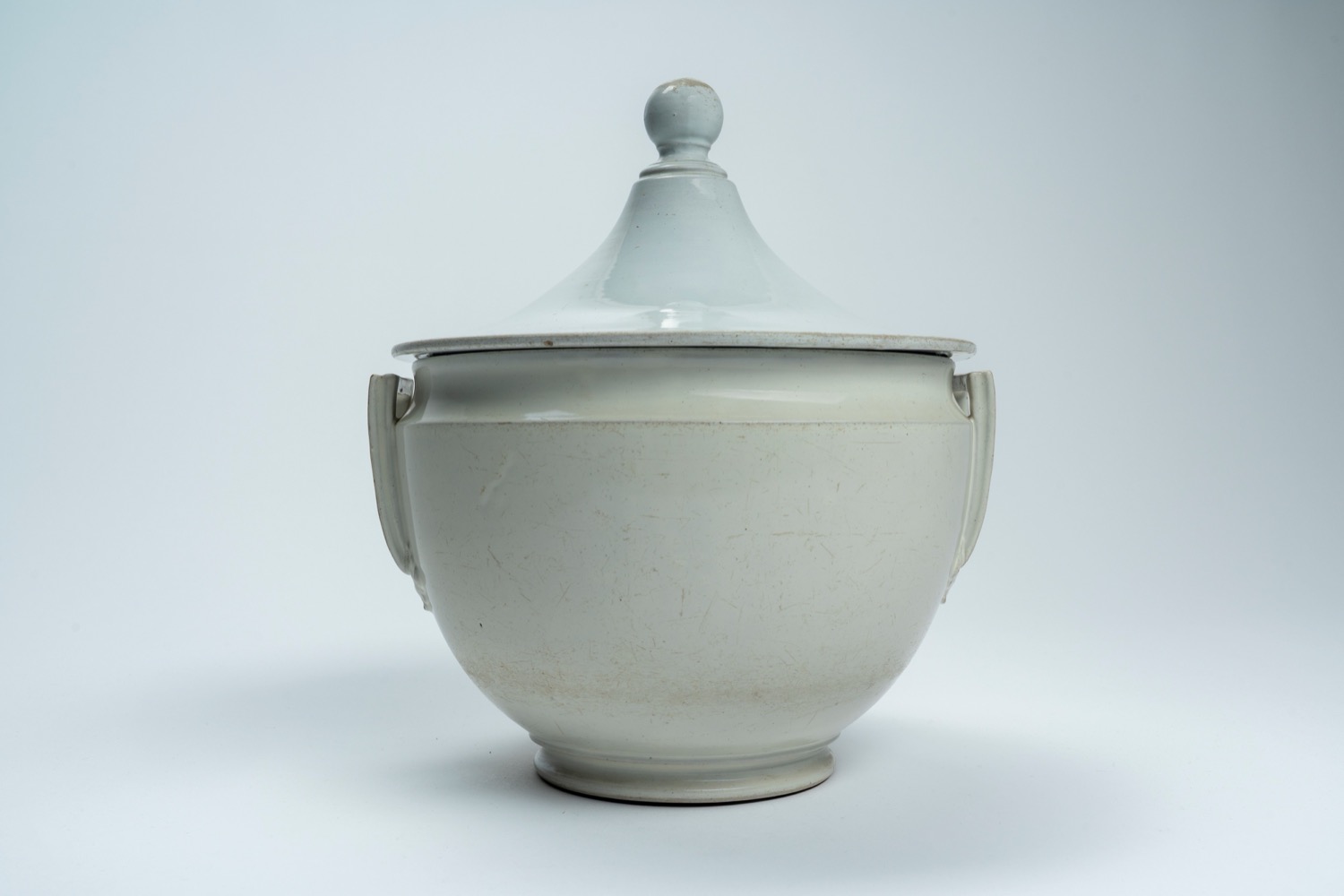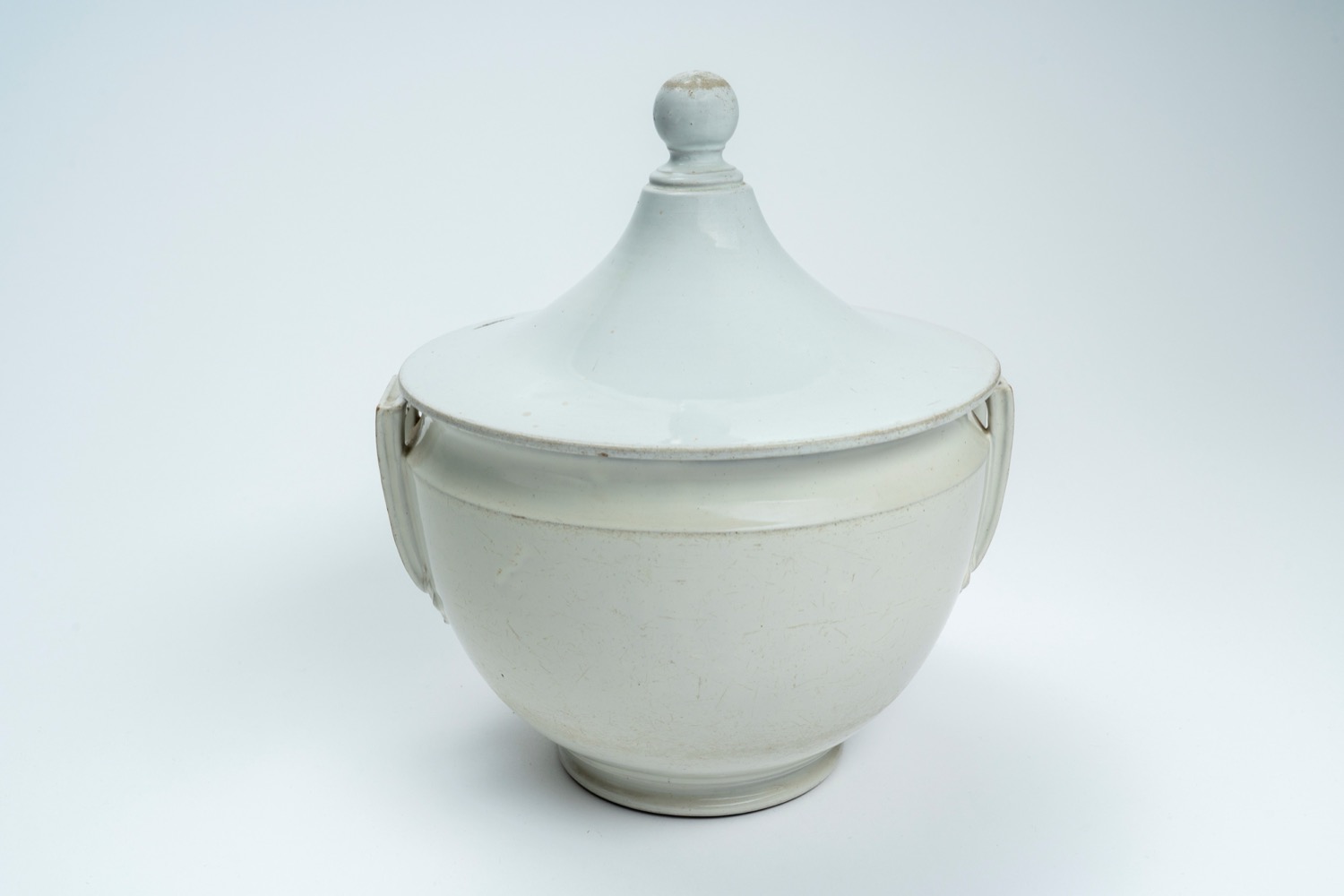 Zuppiera biansata con coperchio in ceramica bianca. Manifattura Ginori a Doccia, inizio secolo XIX