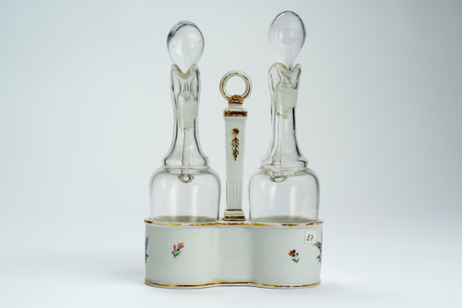 Porta oliera in porcellana con decoro policromo “al mazzetto” e a fiori sparsi. Manifattura Ginori a Doccia, fine secolo XVIII