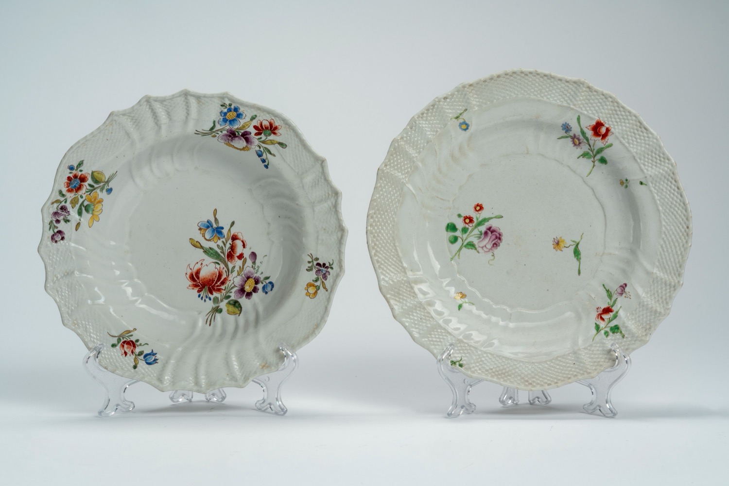 Un piatto fondo e un piatto piano in porcellana con decoro policromo “al mazzetto” e a fiori sparsi. Manifattura Ginori a Doccia, fine secolo XVIII