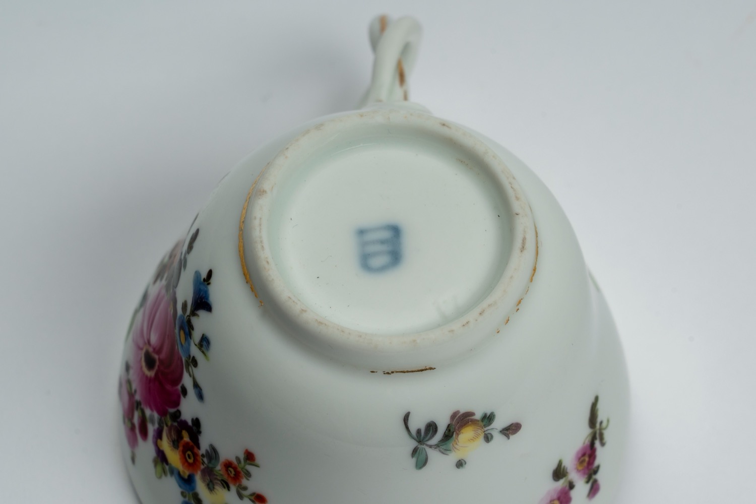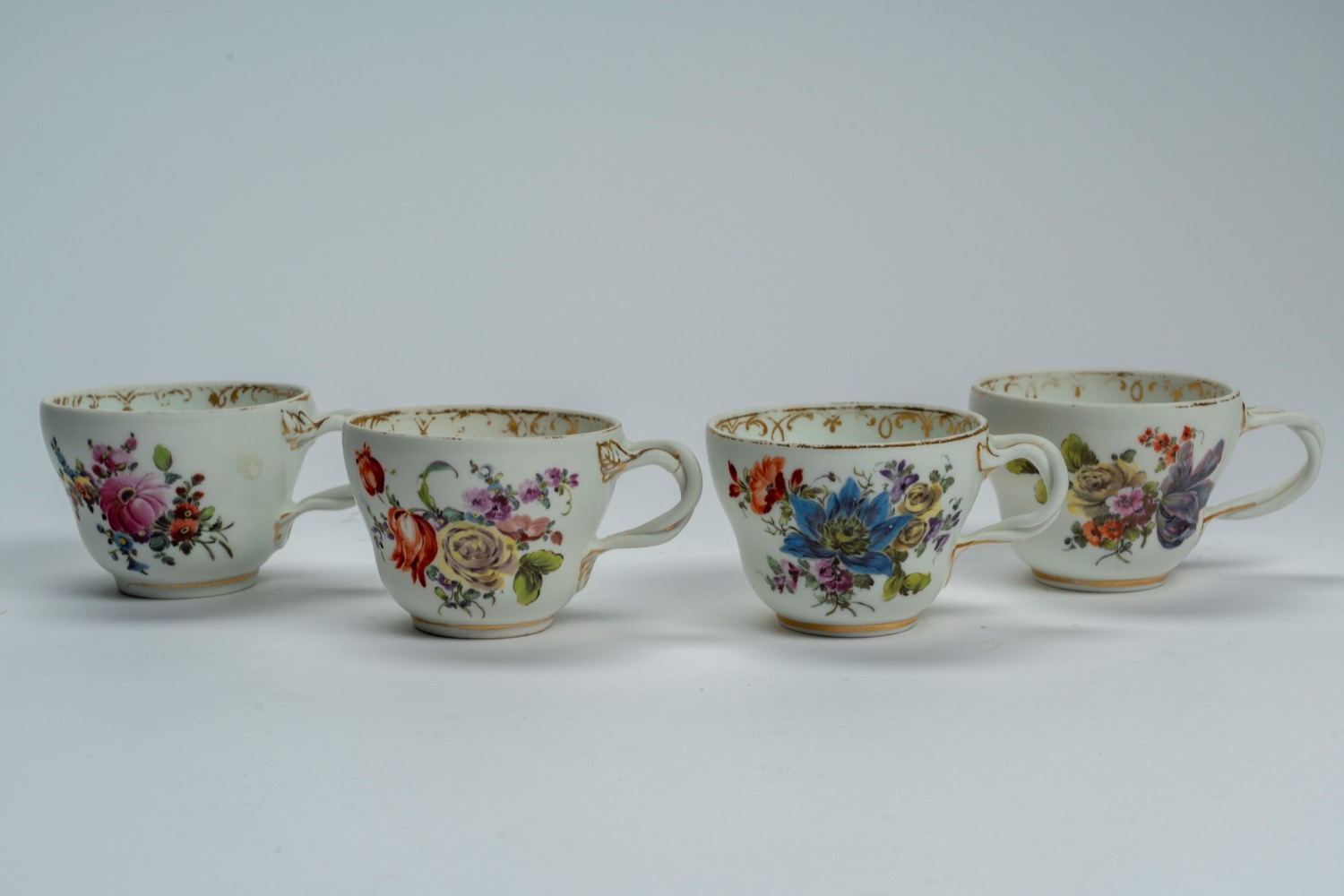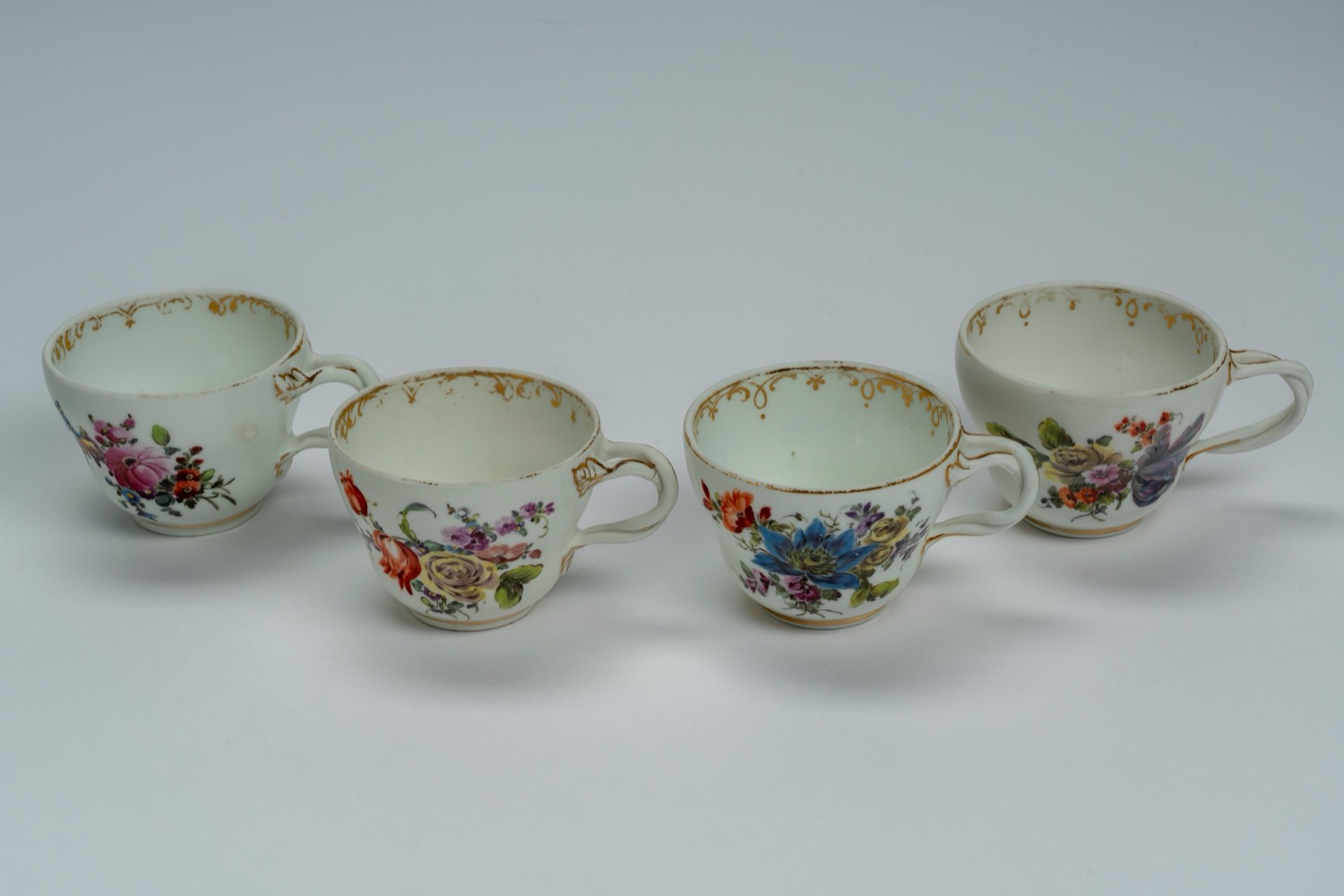 Quattro tazzine in porcellana con decoro policromo al mazzetto e fiori sparsi. Manifattura di Vienna, fine secolo XVIII