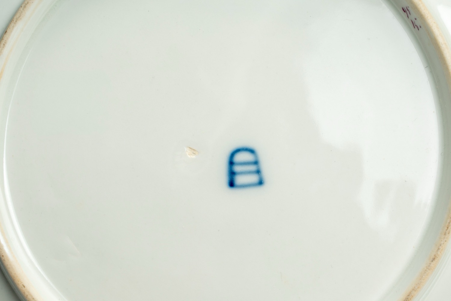 Lotto composto da una coppia di piatti fondi in porcellana decorati in policromia a fiordalisi sparsi e profilati in oro e da altri due piatti fondi c […]