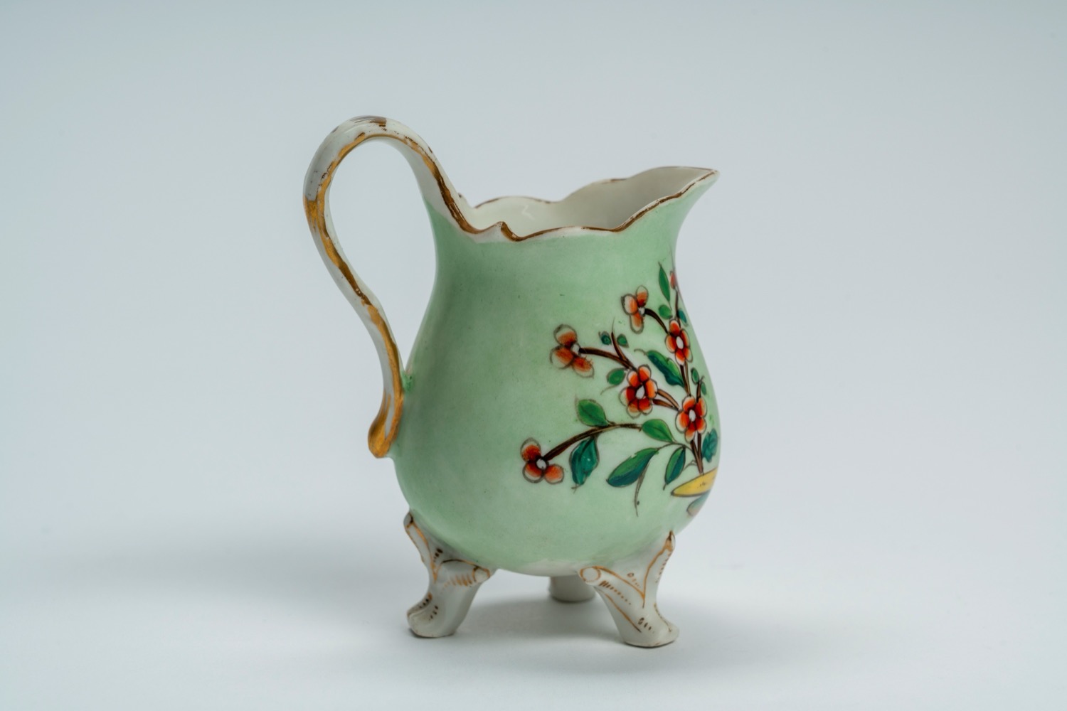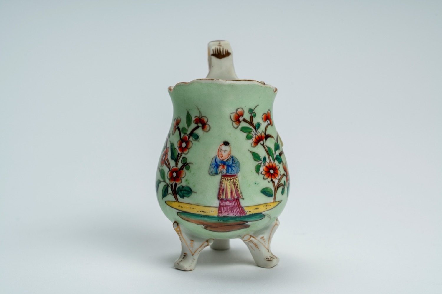 Lattiera in porcellana decorata in policromia all'orientale. Probabile manifattura francese, seconda metà secolo XVIII
