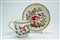 Tazzina con piattino in porcellana dipinta in policromia a uccelli esotici in paesaggi. Chelsea, 1770 circa