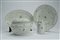 Lotto composto da una zuppiera biansata con coperchio e due piatti da portata in porcellana con decoro policromo a fiori sparsi e filettature in verde […]