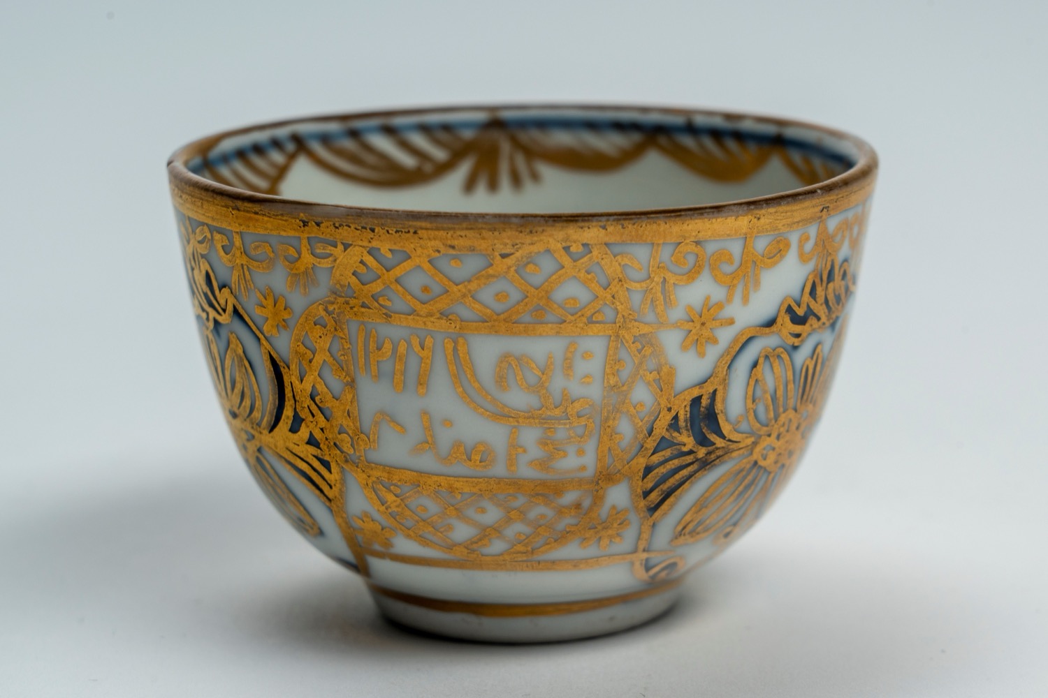 Tazzina in porcellana decorata in blu cobalto e oro a motivi stilizzati. Meissen per il regno di Osman, periodo Marcolini, 1774–1814