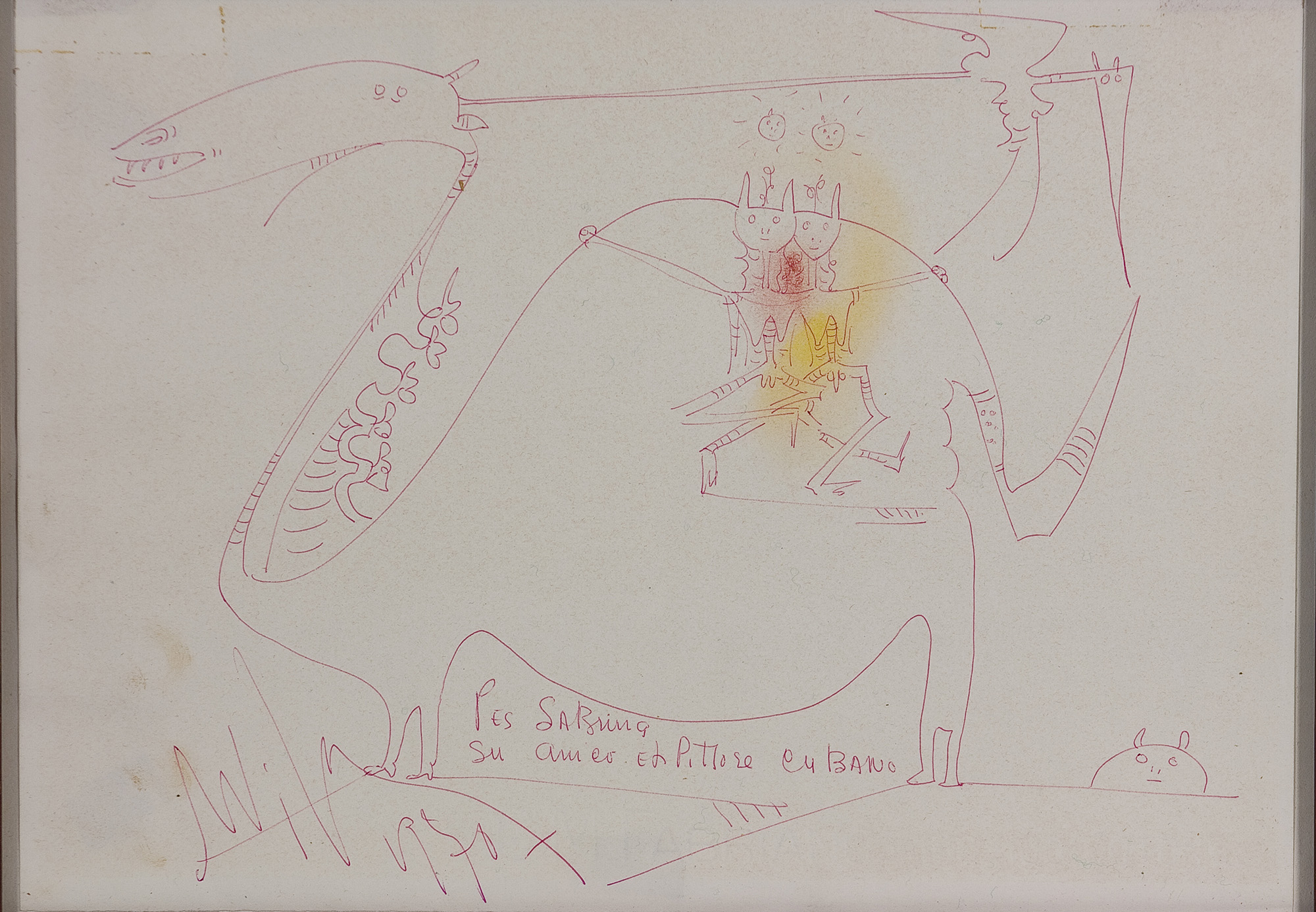 Dedica autografa dell'artista a ""Pes Sabrina su amico el Pittore cubano"" in basso al centro.