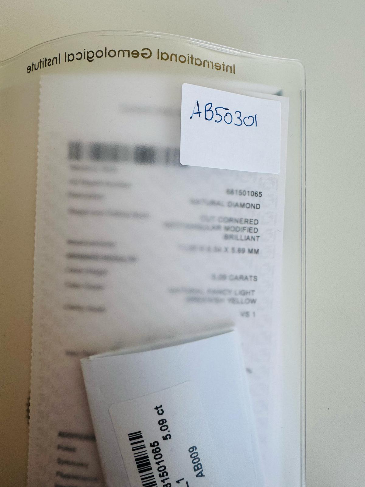 DIAMANTE NATURAL POLISHED 5,09 - COLORE NATURAL FANCY VERDOGNOLO GIALLO CHIARO - PUREZZA VS1 - CERTIFICATO IGI - AB50301 - COMMISSIONE D’ASTA 25%
