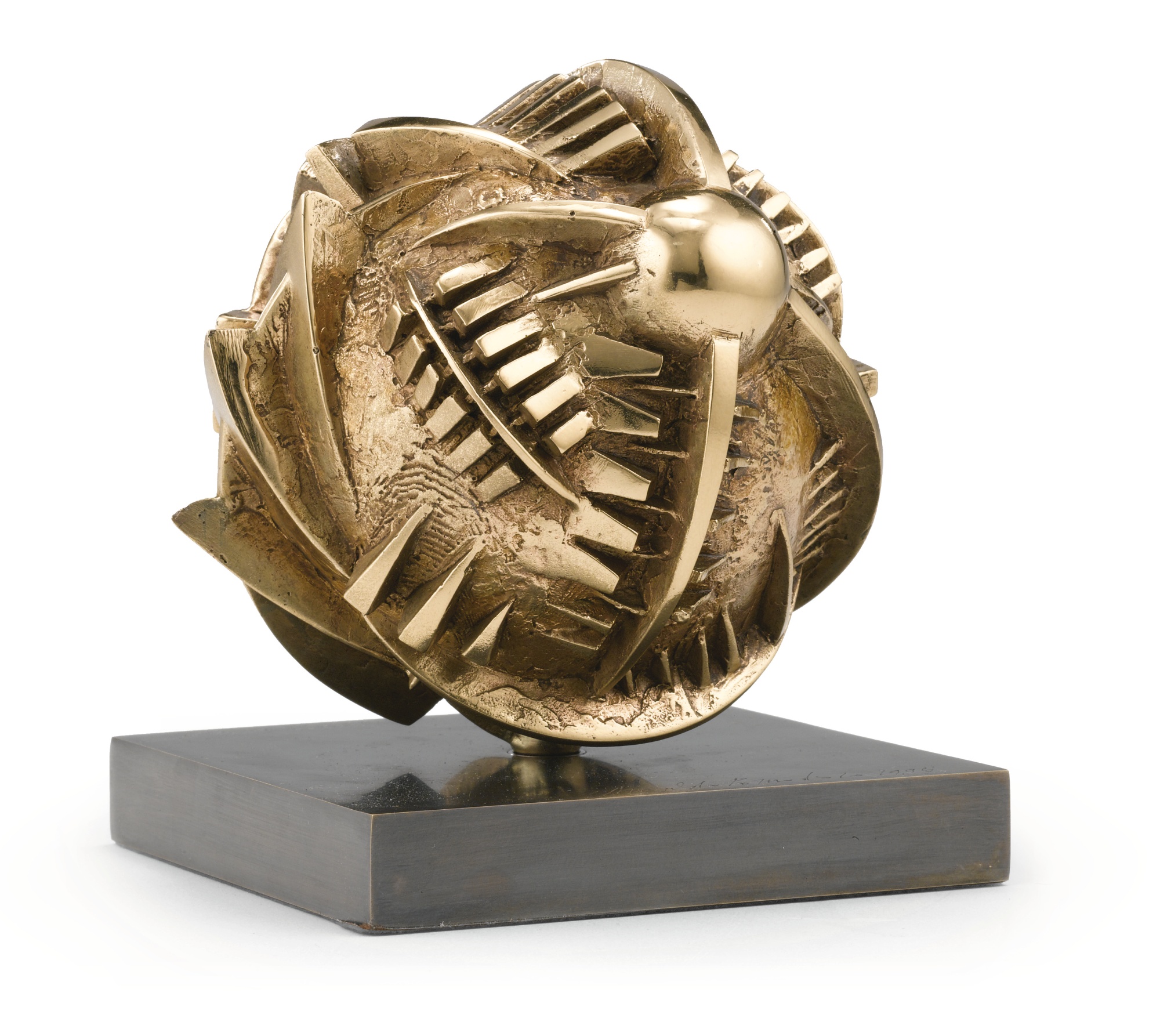 Arnaldo Pomodoro N. 1926 SFERA DI SAN LEO, STUDIO N. 2 firmato, datato 1998 e numerato 1/8 sulla base bronzo diam cm 12 Edizione di 8 + 2 PA Authentication Opera registrata presso l'Archivio Arnaldo Pomodoro, Milano, con il n. 733 Literature Flaminio Gualdoni, Arnaldo Pomodoro. Catalogo ragionato della scultura, Milano 2007, Tomo II, p. 744-745, n. 996, illustrato