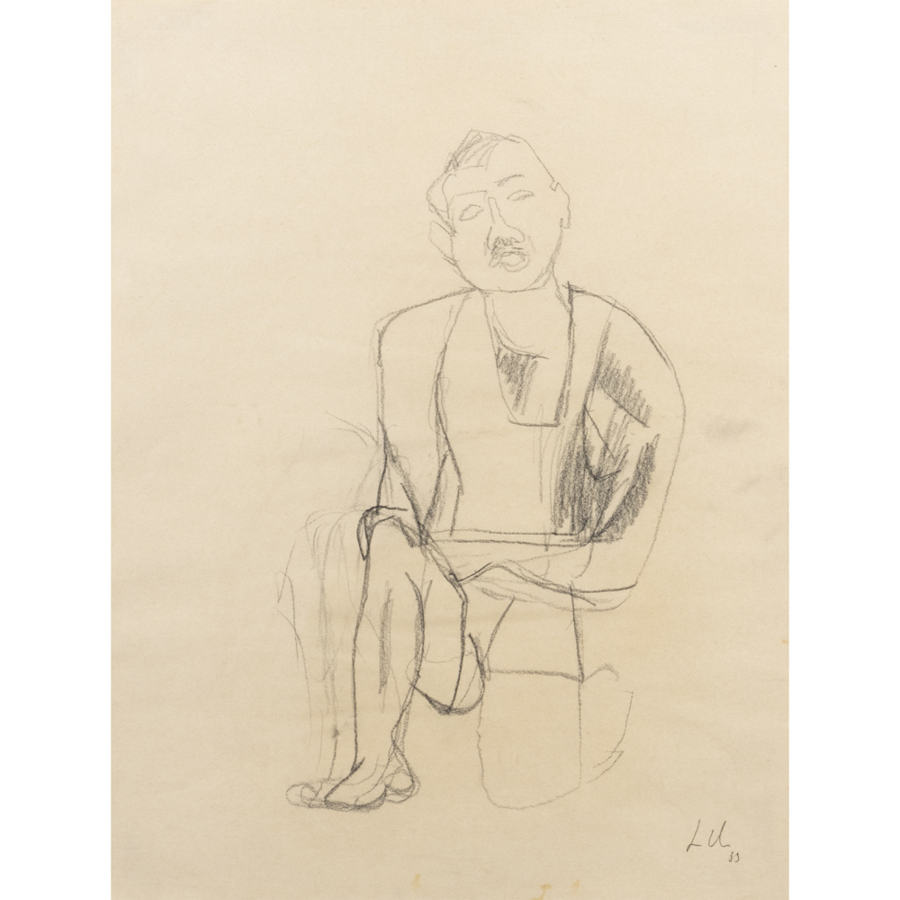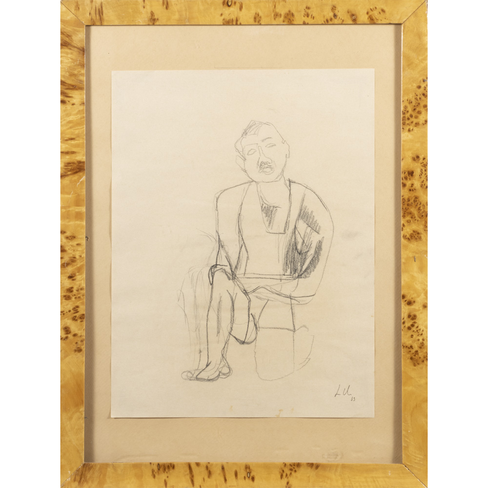 "Uomo seduto"198939,5x30cm.carboncino su carta, firmato in basso a destra, entro cornice