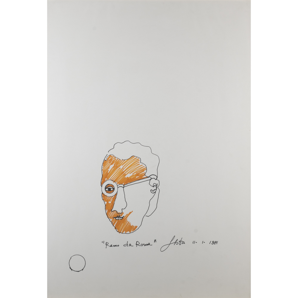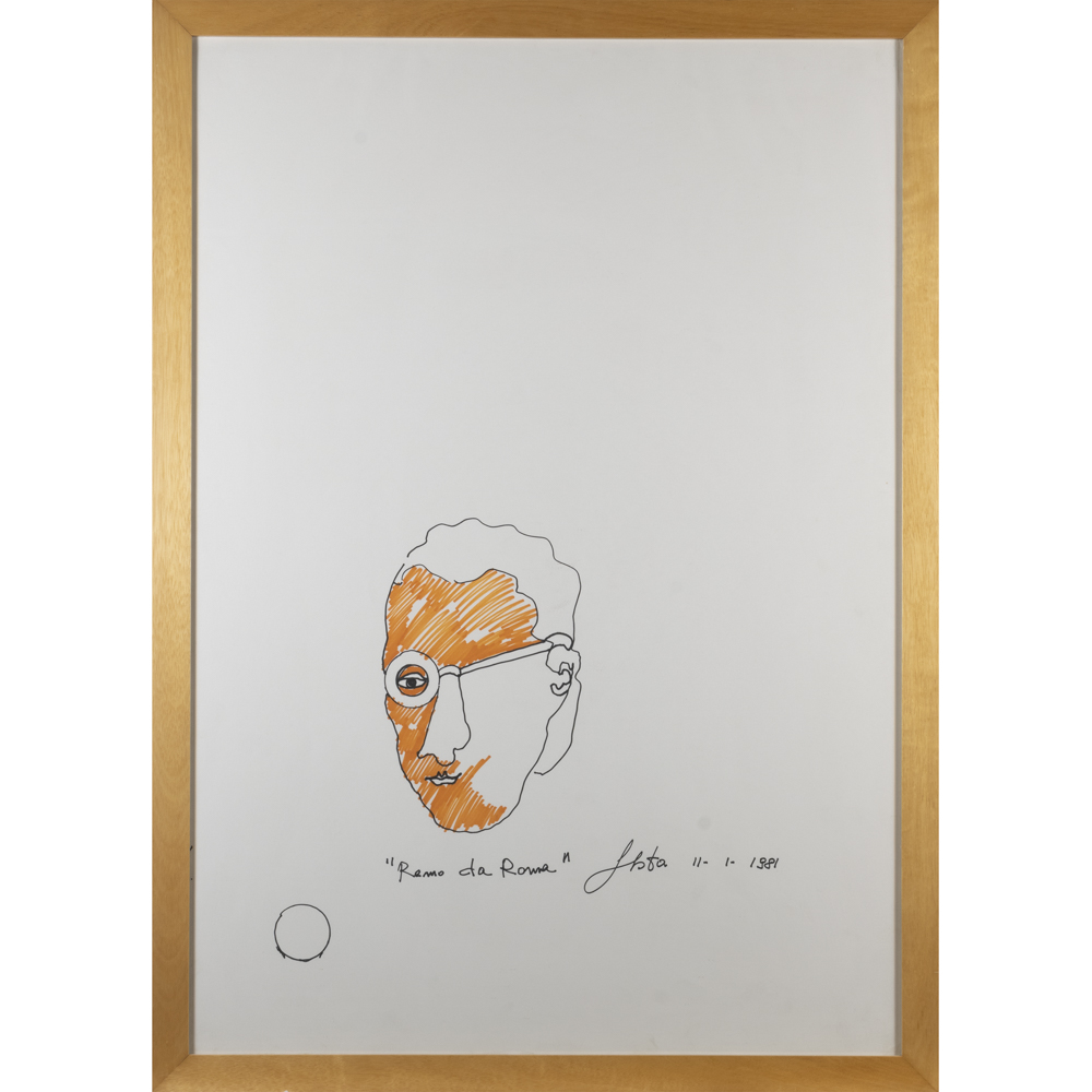 "Remo da Roma"1981100x70 cm.pennarelli su carta, titolato e firmato in basso, entro cornice