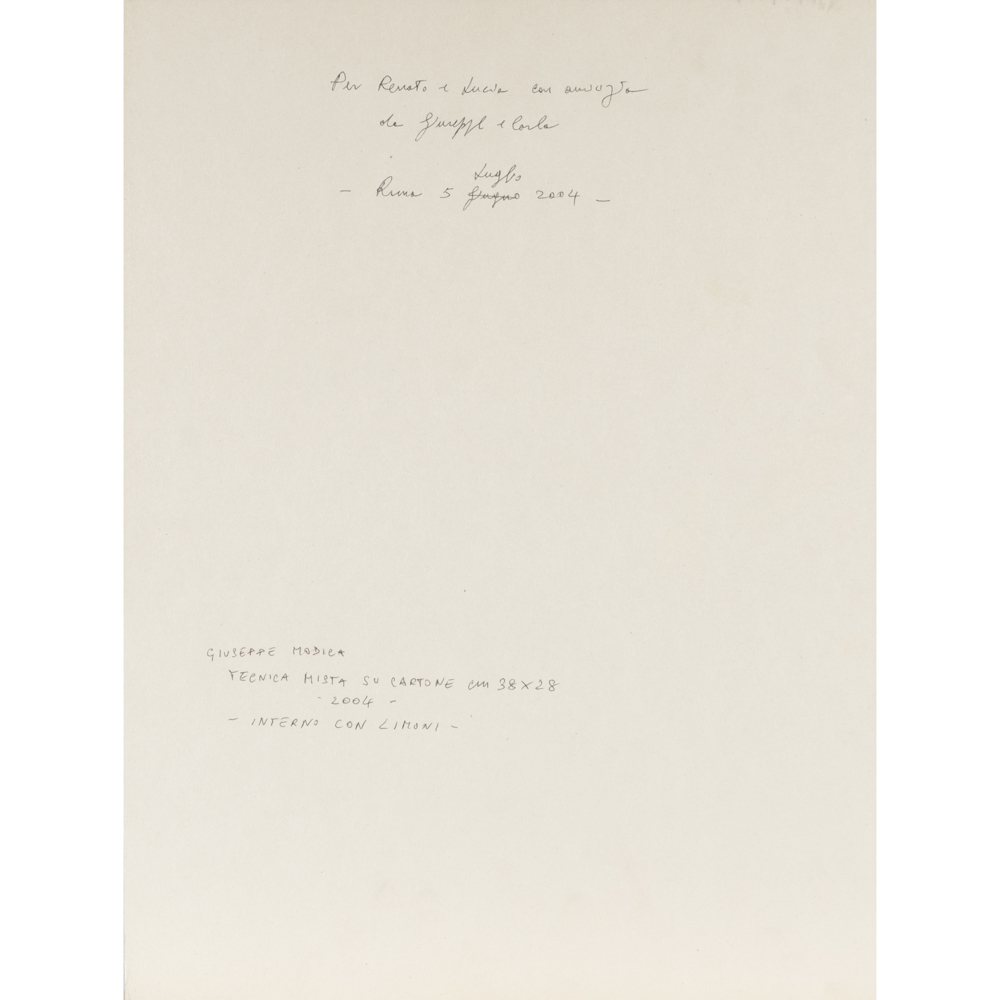 "Interno con limoni"200838x28 cm.tecnica mista su cartone, firmato in basso a destra, firmato con dedica e titolato sul retro