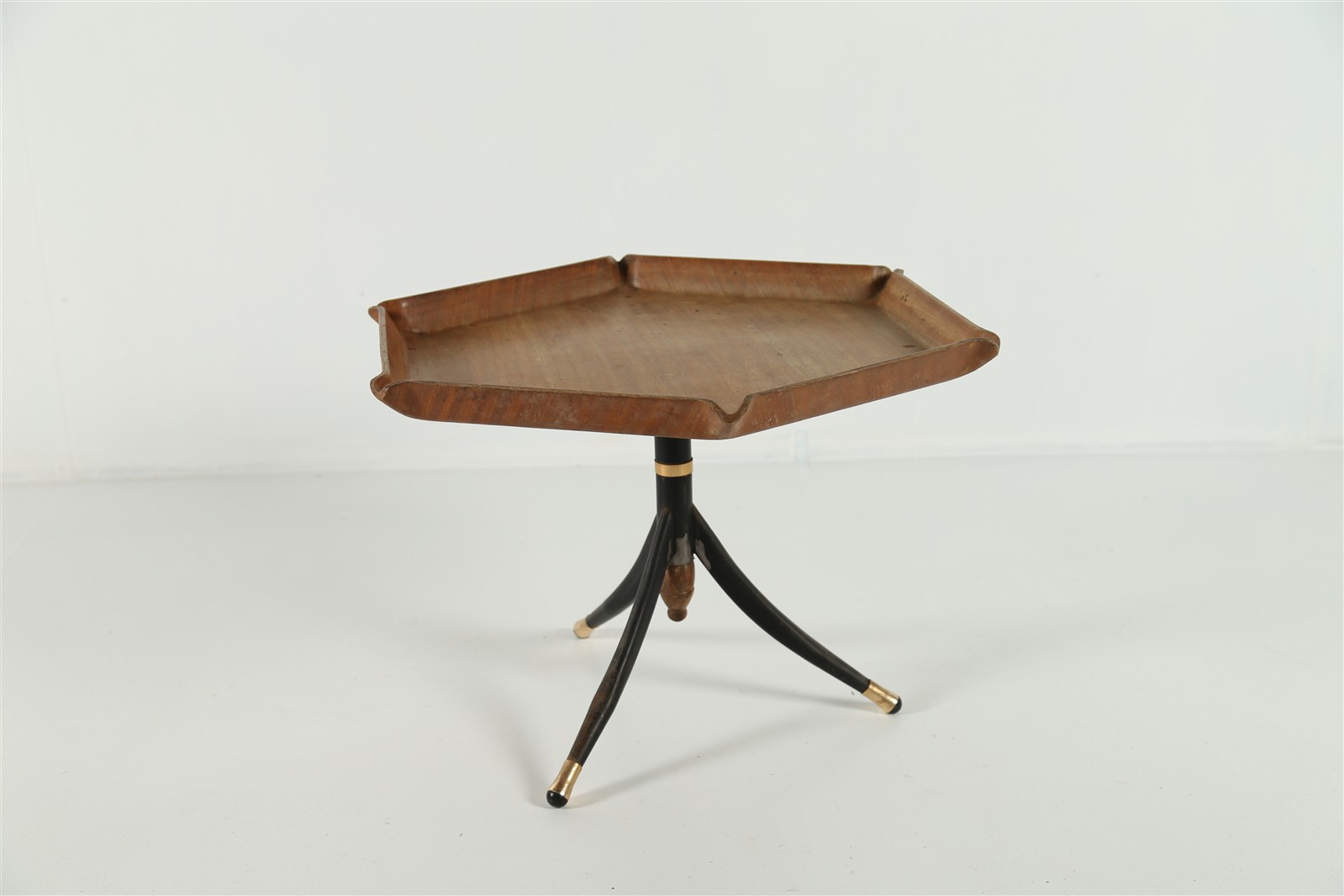MANIFATTURA DEL XX SECOLO Tavolino esagonale. Legno e metallo. Cm 67,00 x 46,00 x 67,00.