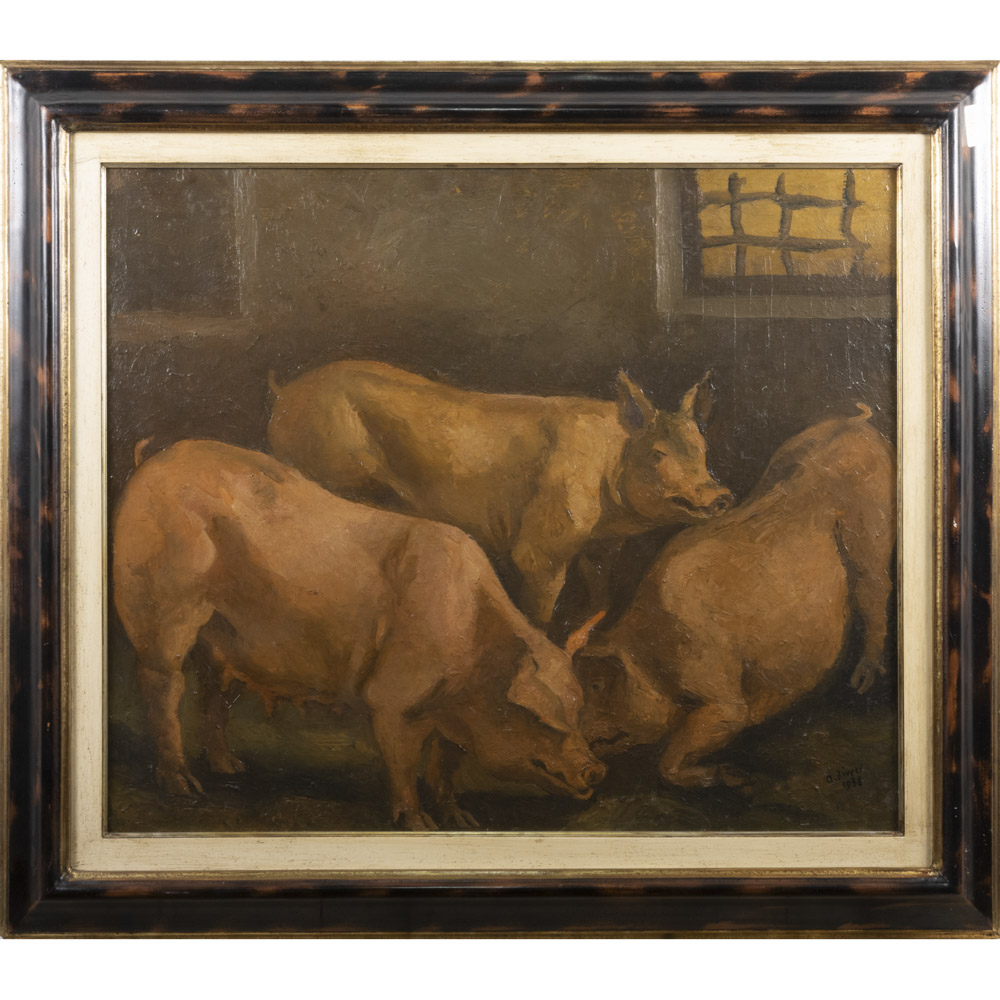 "Maiali"193860x72 cm.olio su tavola, firmato e datato in basso a destra, entro cornice