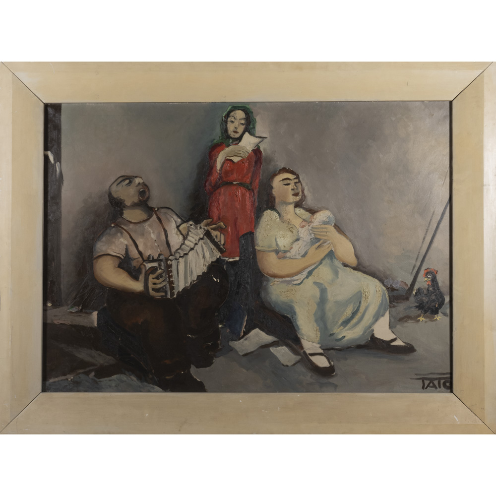 "Suonatori ambulanti"100x140 cm.olio su tela, firmato in basso a destra, entro cornice