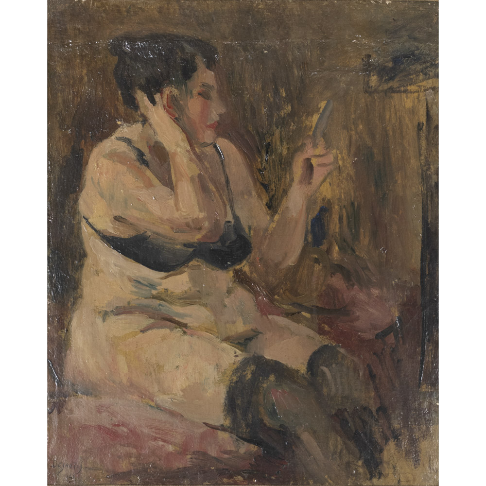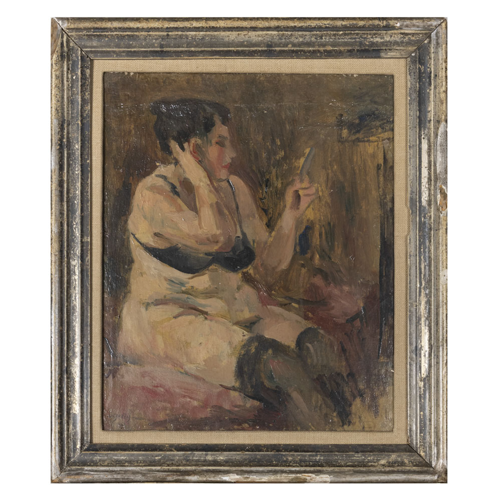 "Nudo di donna con specchio"194131x26,5 cm.olio su tela, firmato e datato in basso a sinistra, firmato e datato sul retro, entro cornice
