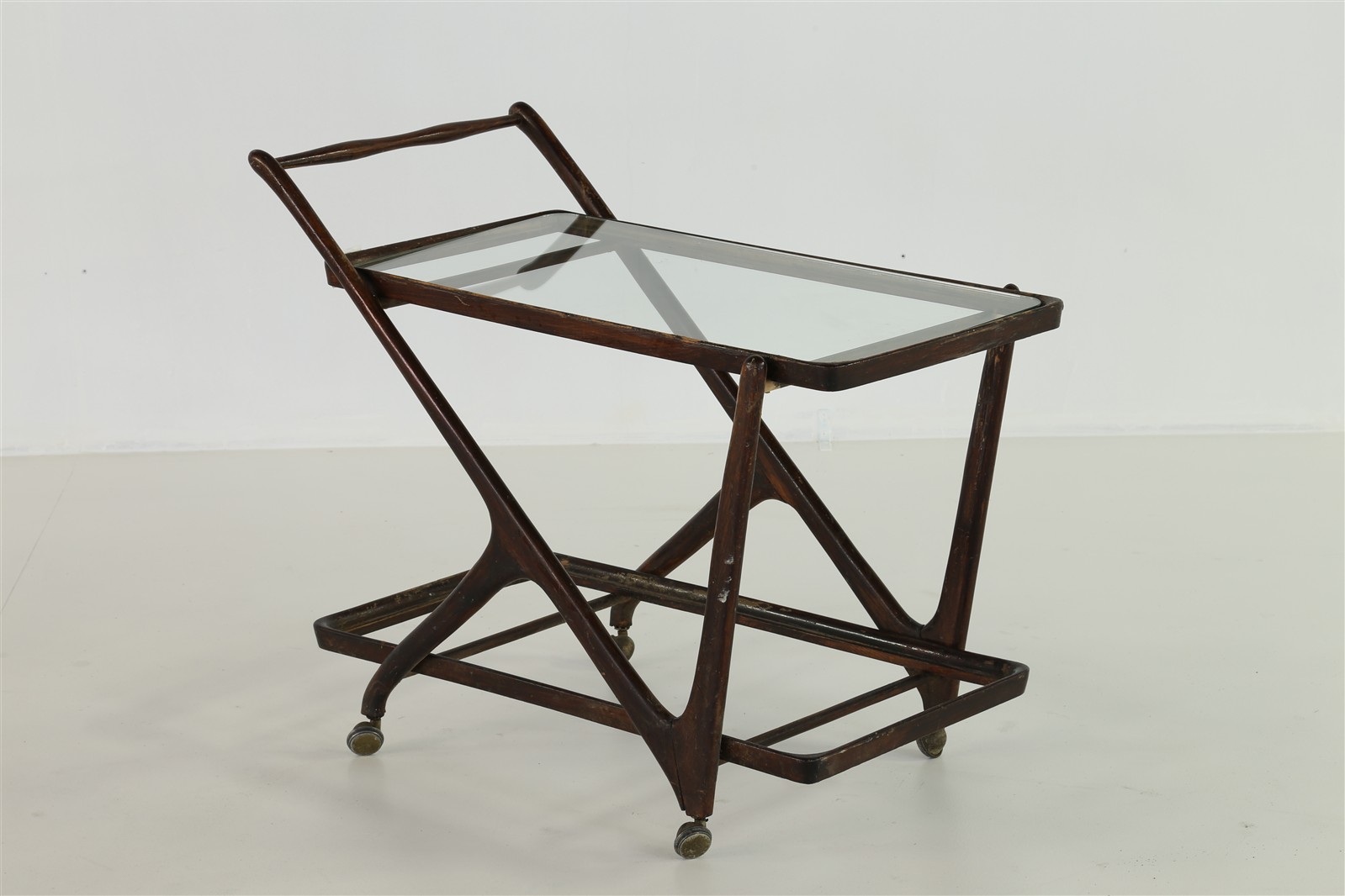 LACCA CESARE Carrello. Legno e vetro. Cm 84,00 x 70,00 x 45,00. Anni '50....