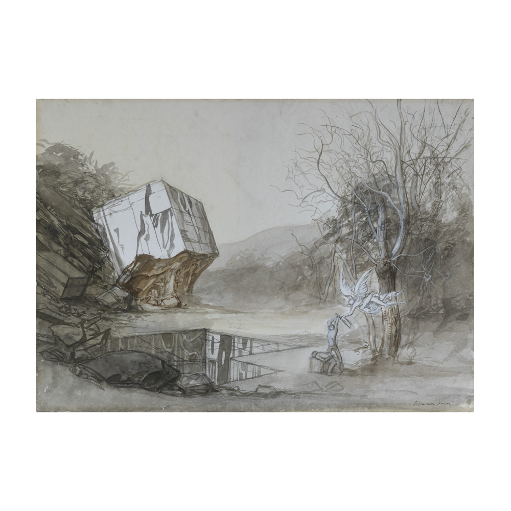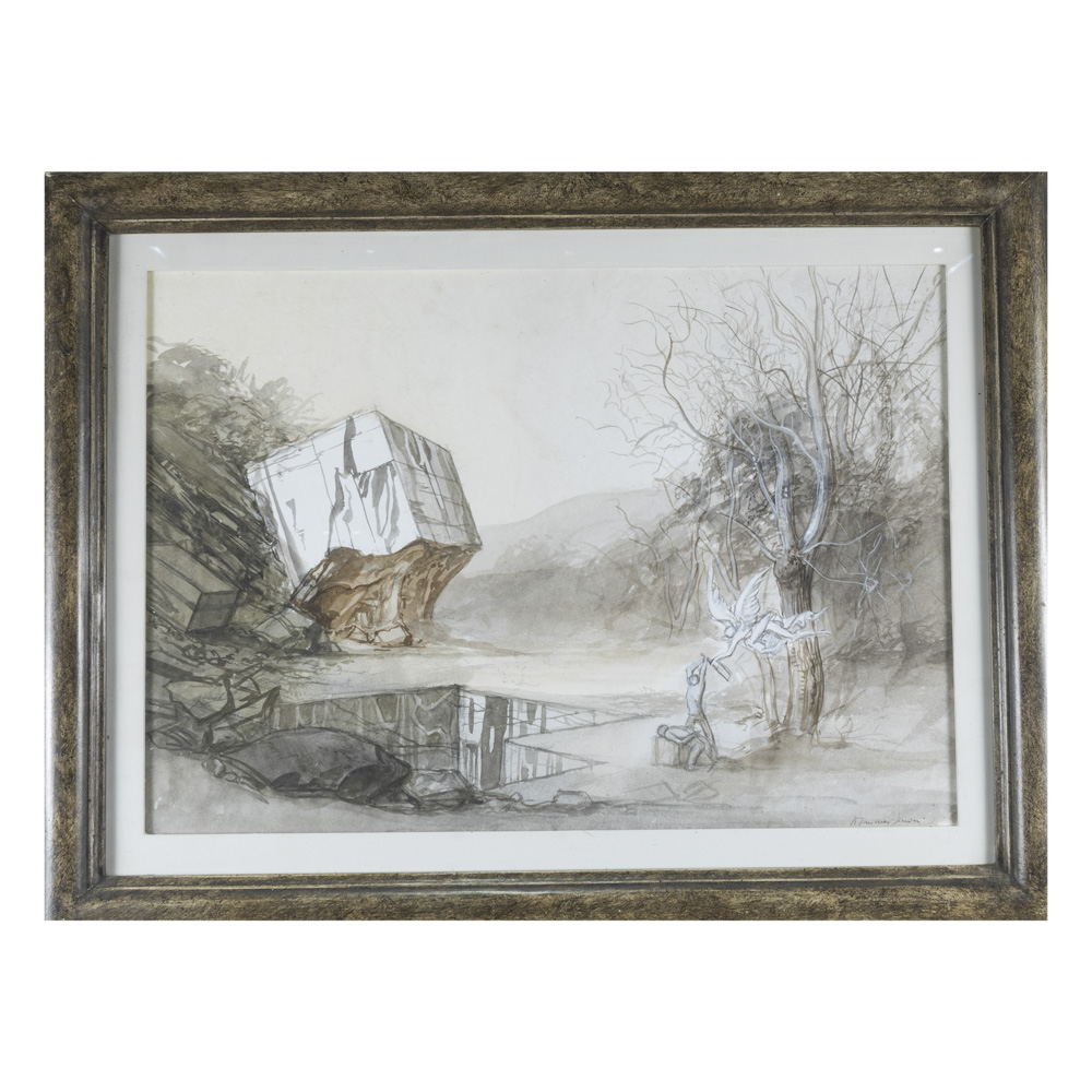 "Il sacrificio di Isacco"50x36 cm.acquerello su carta, firmato in basso a destra, entro cornice
