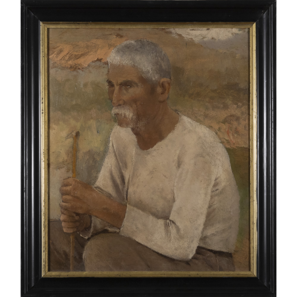 "Contadino"55x46 cm.olio su compensato, firmato in basso a destra, entro cornice