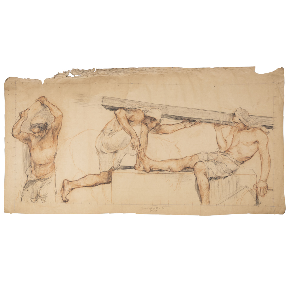 "Lavoro nel porto - Genova. Bozzetto per gli affreschi del Ministero della Marina"1927-192882,5x157 cm.carboncino e sanguigna su carta, titolato in basso al centro, foglio libero