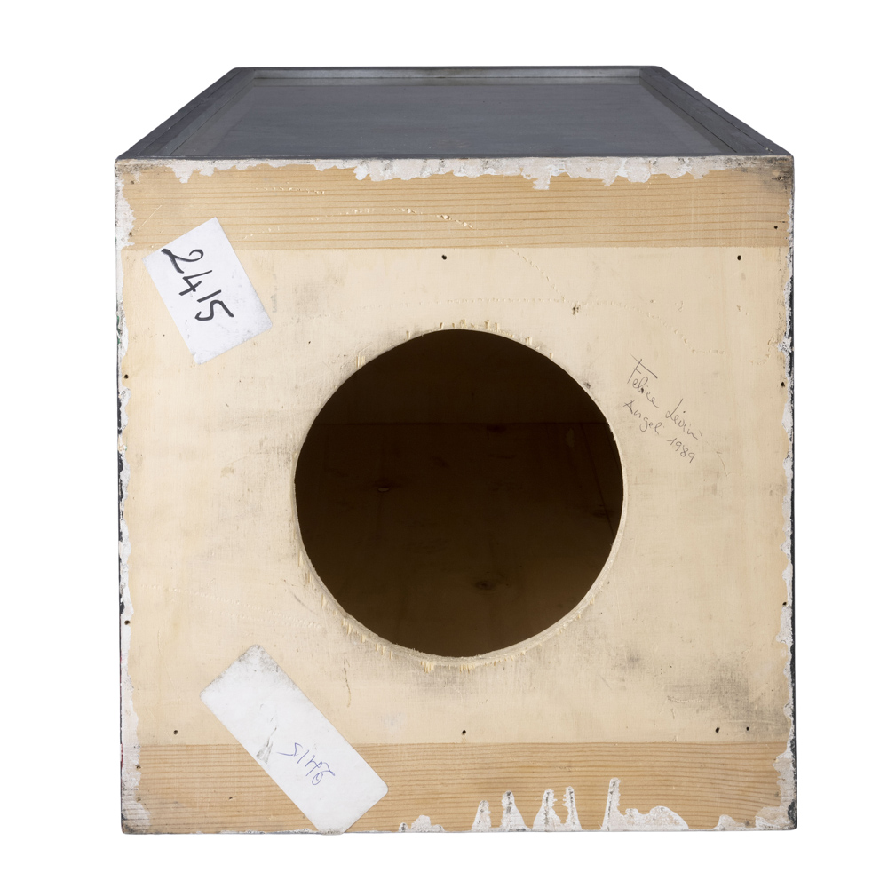 Serie "Circolo degli angeli"1988/8950x30x30 cm.scultura in multimateriale, acrilico su tavola e assemblage, firmato, datato e titolato sotto la base