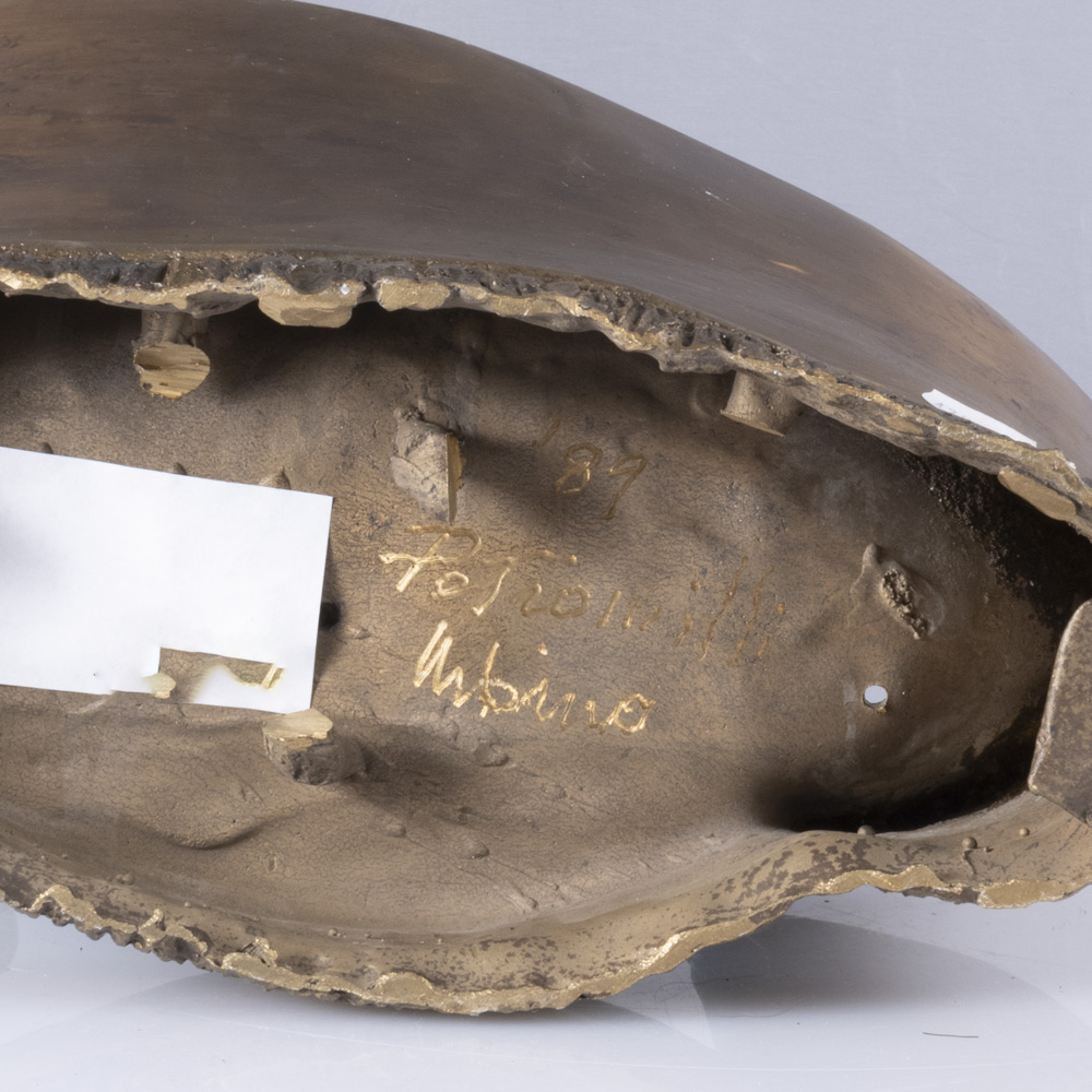 "Annunciazione"198928x47x19,5 cm.scultura in bronzo dorato e smaltato, firmato e datato sotto la base