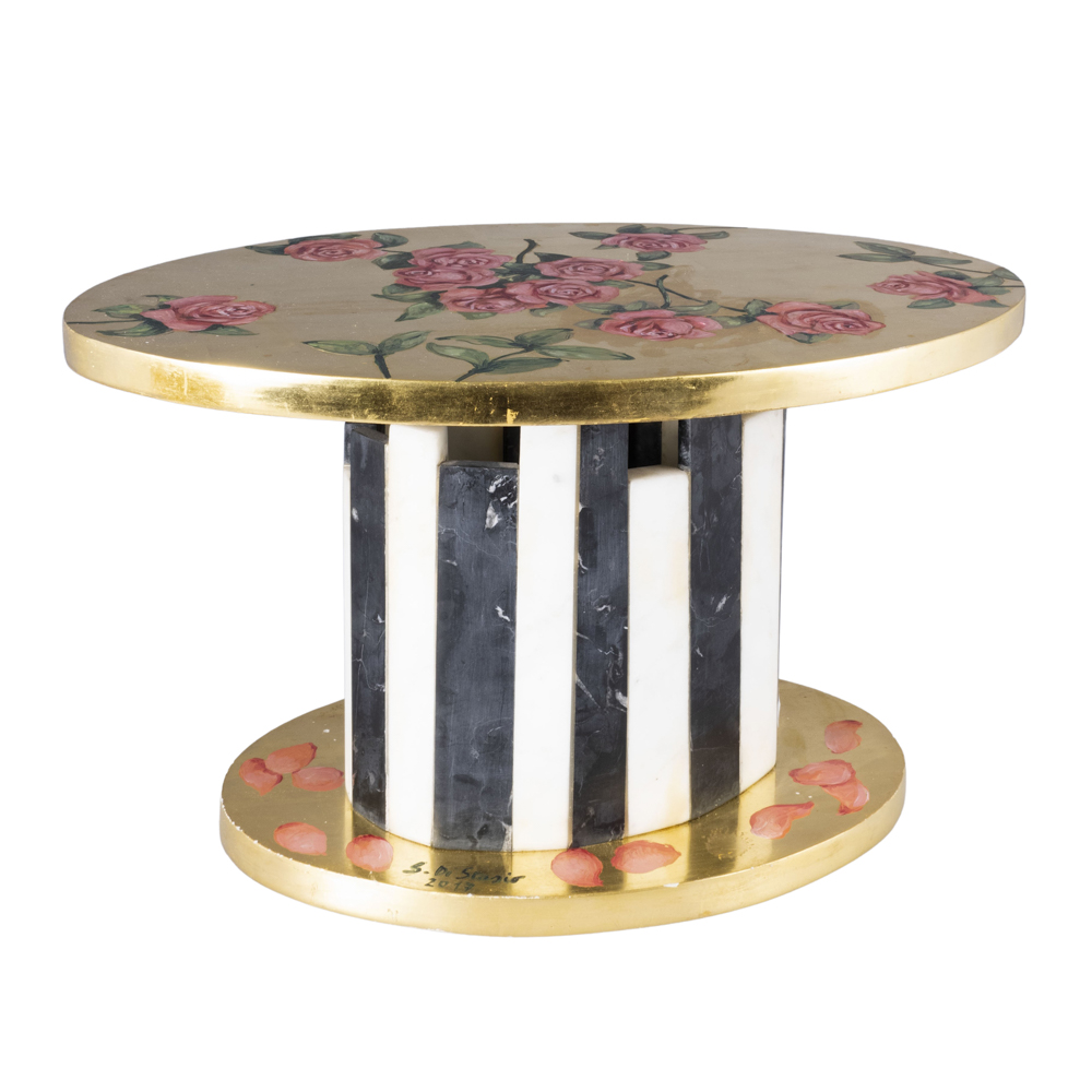 "Senza titolo"201721,5x39x26,5 cm.centrotavola in marmi, legno dorato e pittura ad olio, firmato e datato sulla base