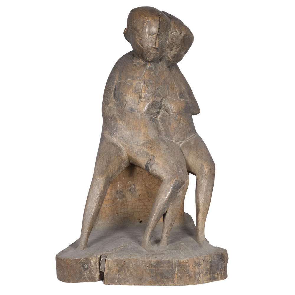 "Contadinelli a riposo"195396x60x51 cm.scultura in legno