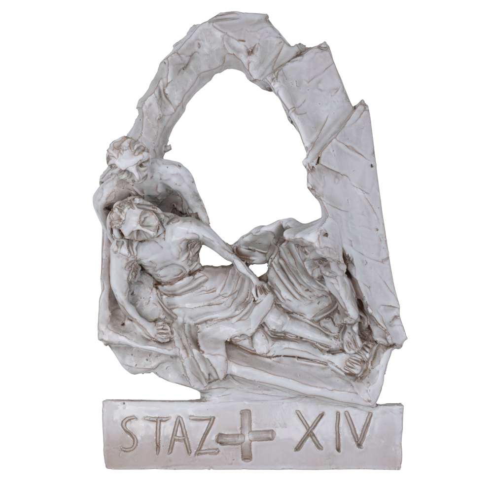"Via Crucis - Stazione XIV"199239x26x10 cm.ceramica modellata a mano e smaltata
