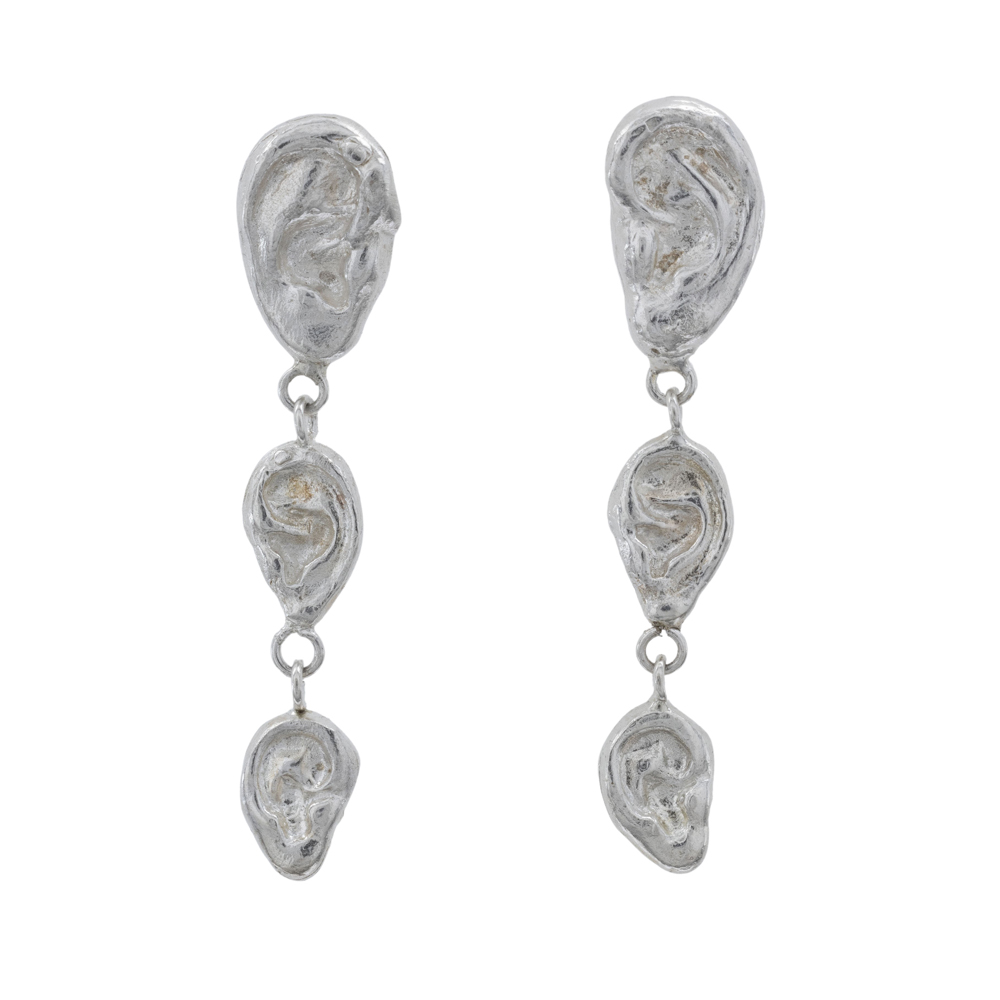 "Orecchini"lunghezza 4,5 cm.pendenti in argento, edizione 2/10, sigla e tiratura sul retro di un elemento