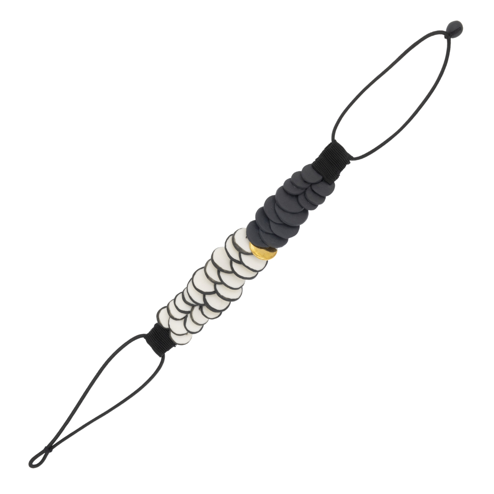 "Girocollo serie Scaglie"lunghezza regolabile 36 cm.in porcellana bianca, nera e dorata modellata a mano e ossidi, laccio in tessuto elastico